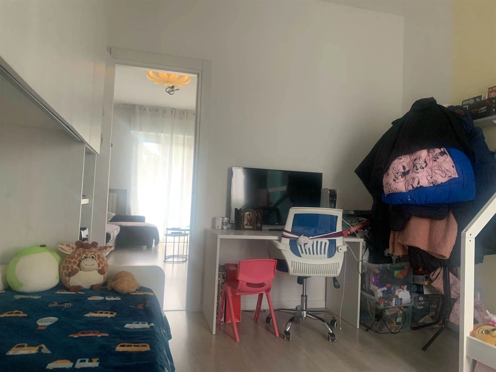 La zona notte è composta da una spaziosa camera matrimoniale, una seconda camera versatile e funzionale, e un bagno finestrato, completamente rinnovato, dotato di sanitari moderni e finiture attuali.