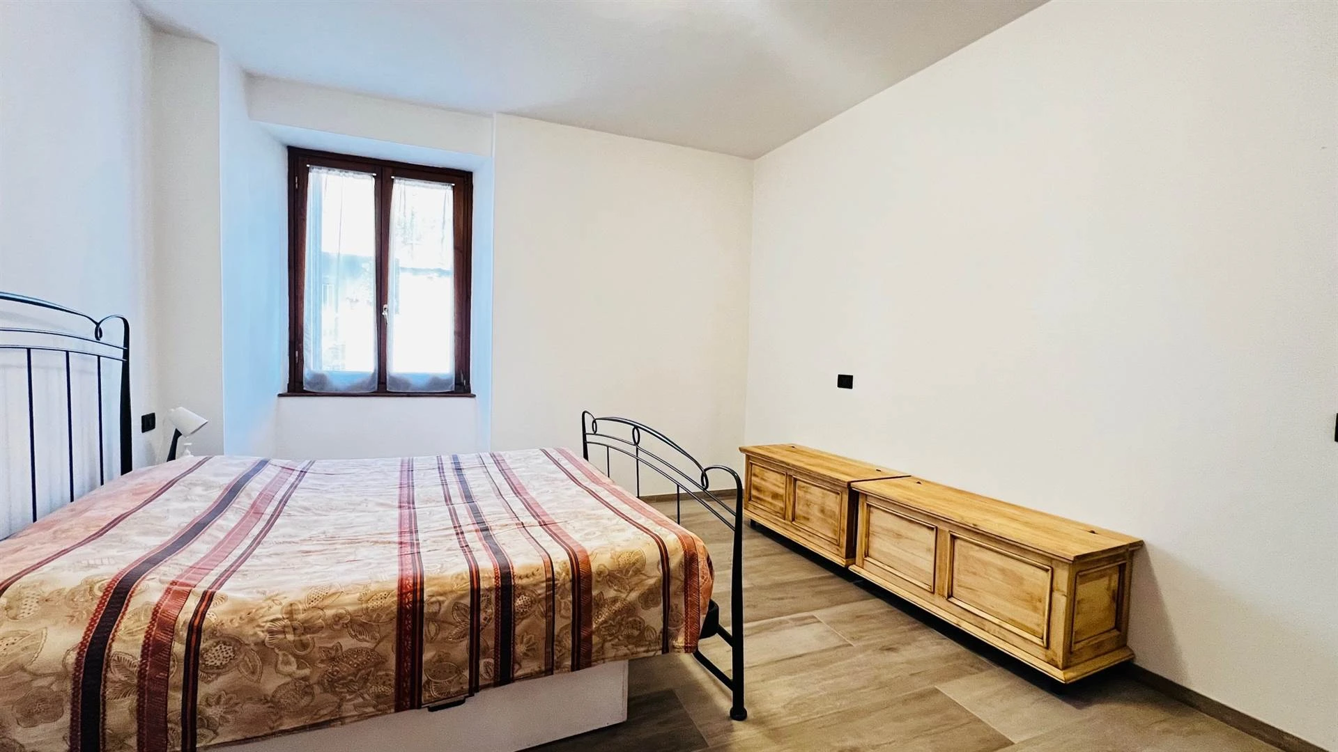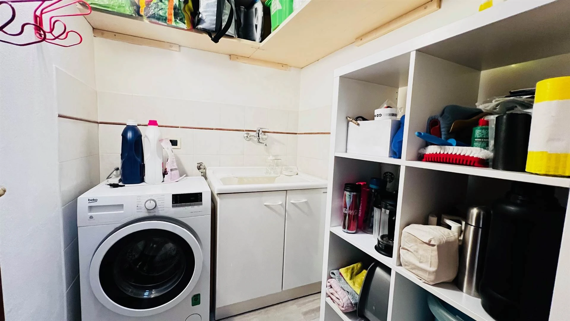 Entrando troviamo un ampio soggiorno con cucina a vista, ben distribuito e luminoso. La zona notte è composta da una camera matrimoniale con cabina armadio separata, oltre a un bagno e a un comodo locale lavanderia, elemento sempre più ricercato e funzionale nella gestione quotidiana della casa.