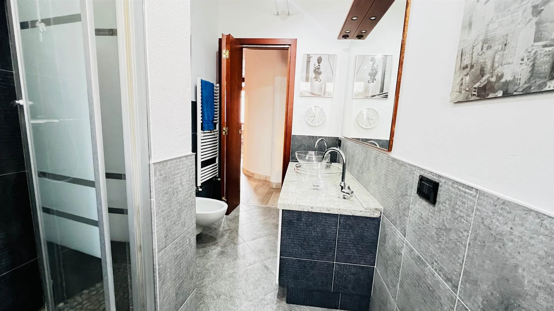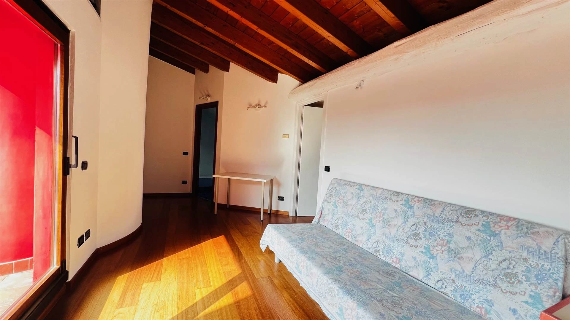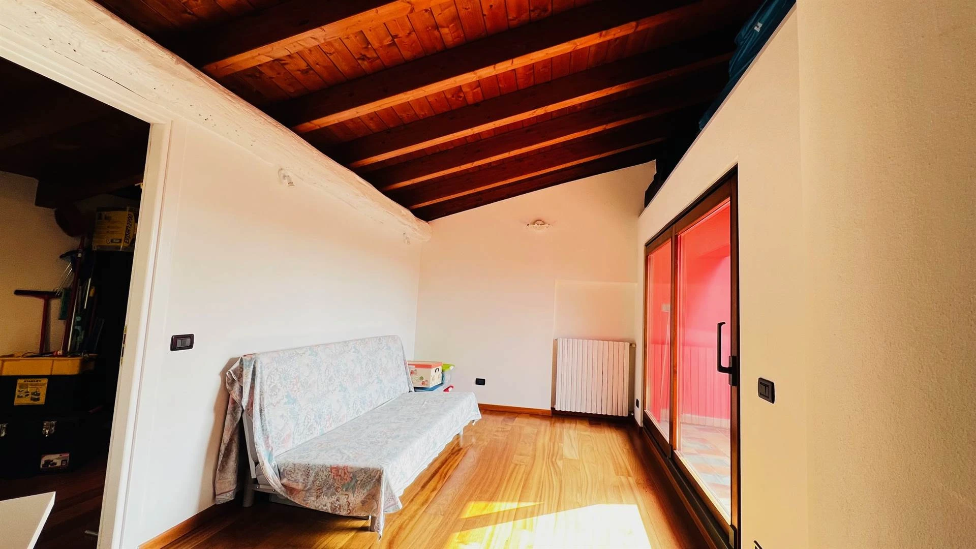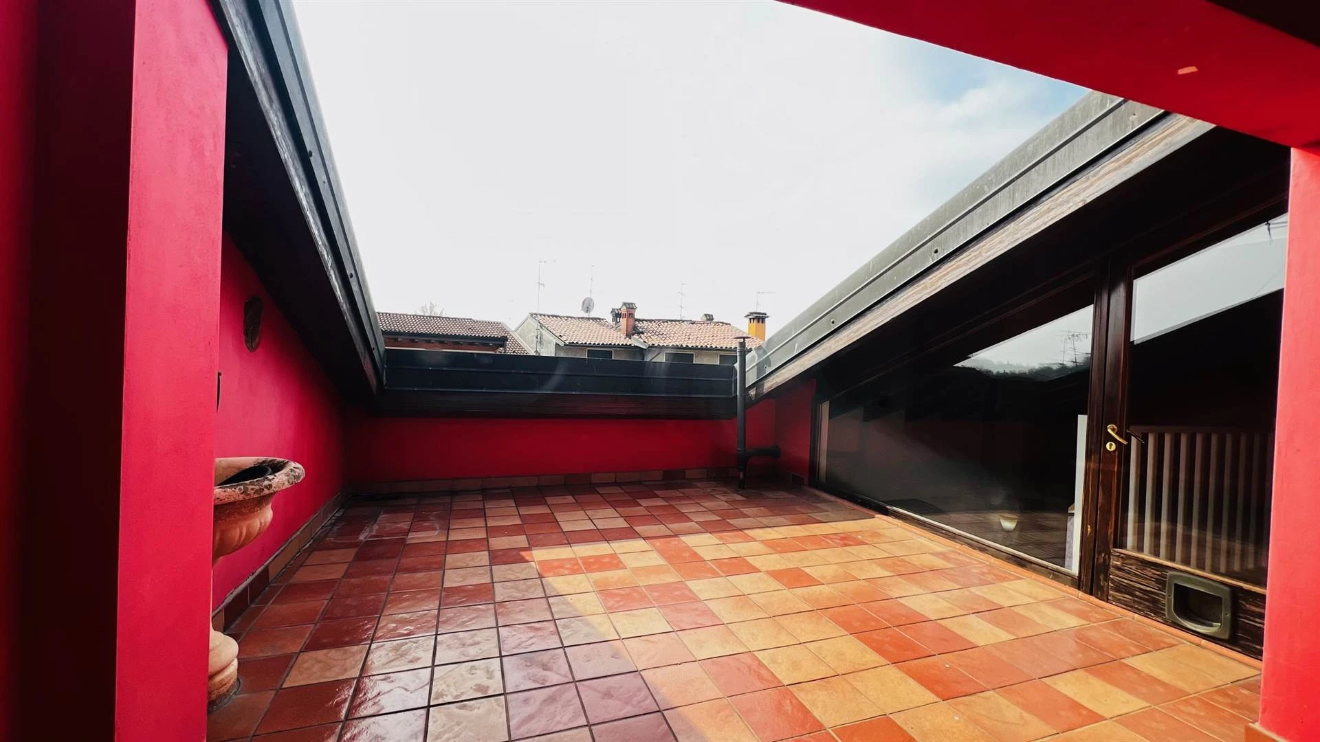 Attraverso collegamento interno si accede al piano superiore, dove è presente un'ulteriore stanza versatile, perfetta come seconda camera, studio o locale hobby, affiancata da un secondo locale cabina armadio. Da qui si gode inoltre dell'affaccio su un ampio terrazzo, spazio esterno che dona ulteriore respiro e vivibilità all'abitazione. Sempre al piano superiore troviamo un ulteriore e ampio bagno.