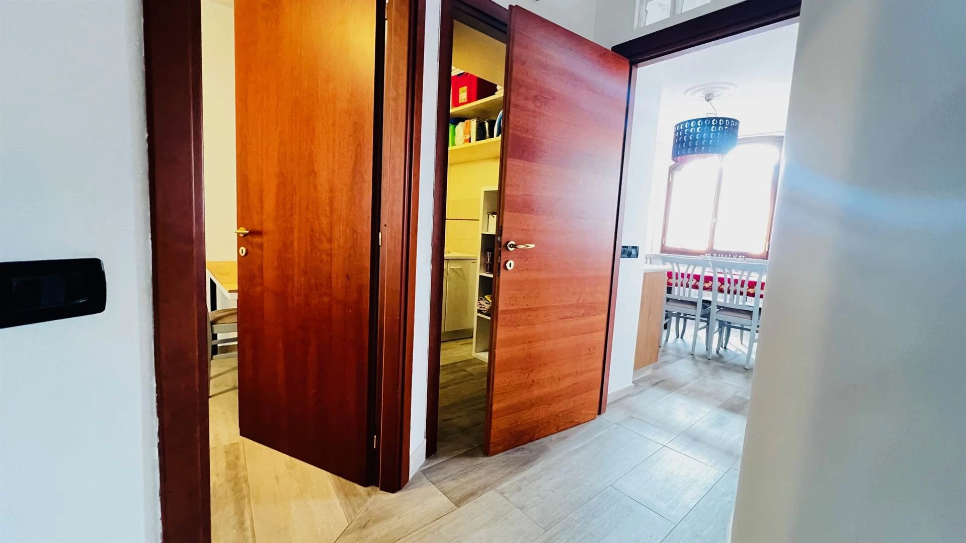 L'abitazione si trova al piano primo e accoglie fin dall'ingresso con un'ampia loggia esclusiva, uno spazio ideale da vivere nella bella stagione, perfetto per un tavolino, momenti di relax o per creare un piccolo angolo verde riservato.