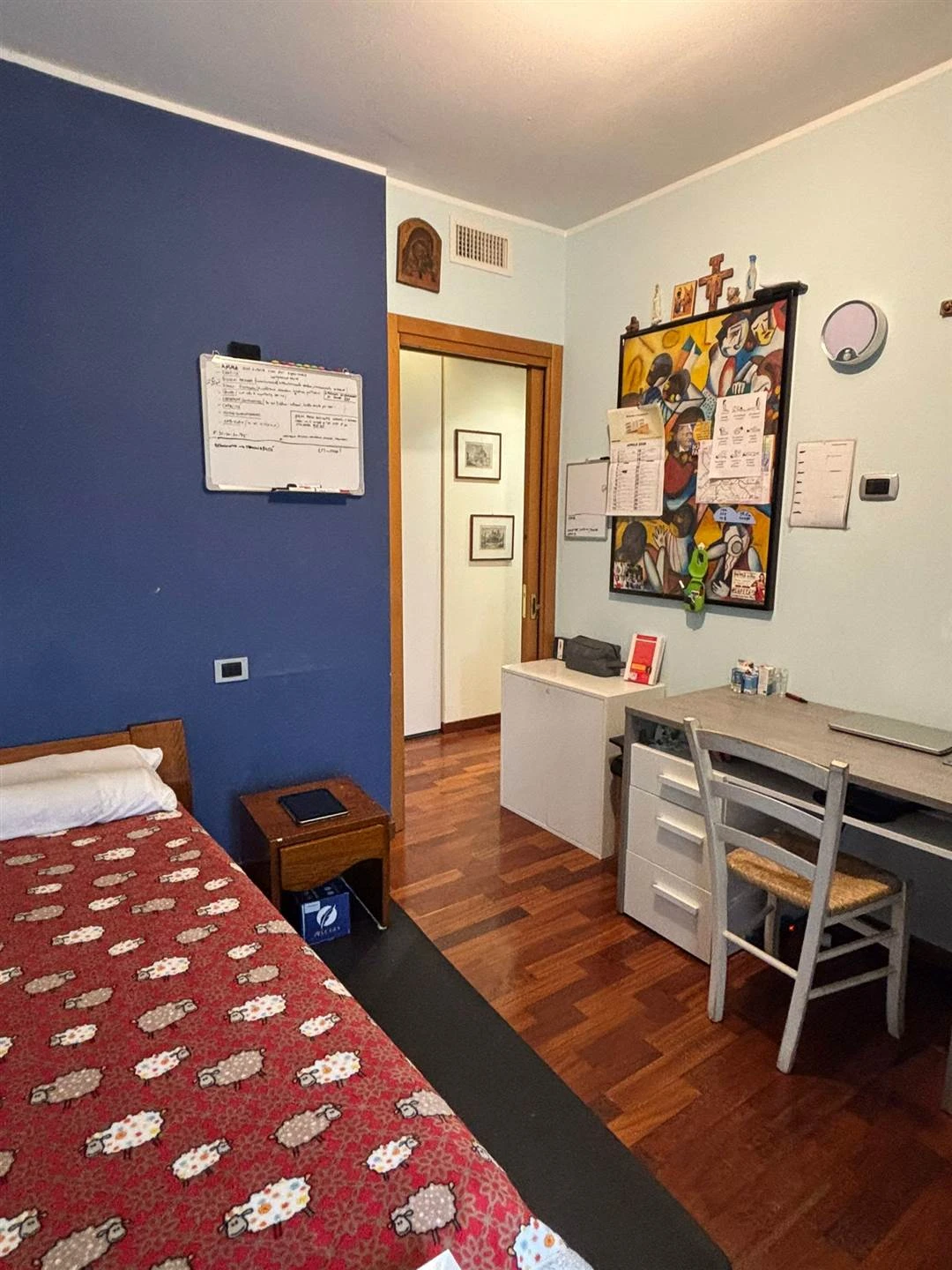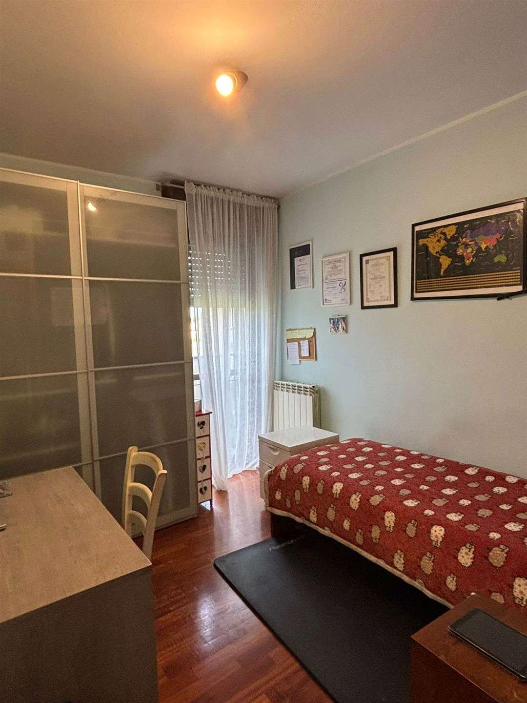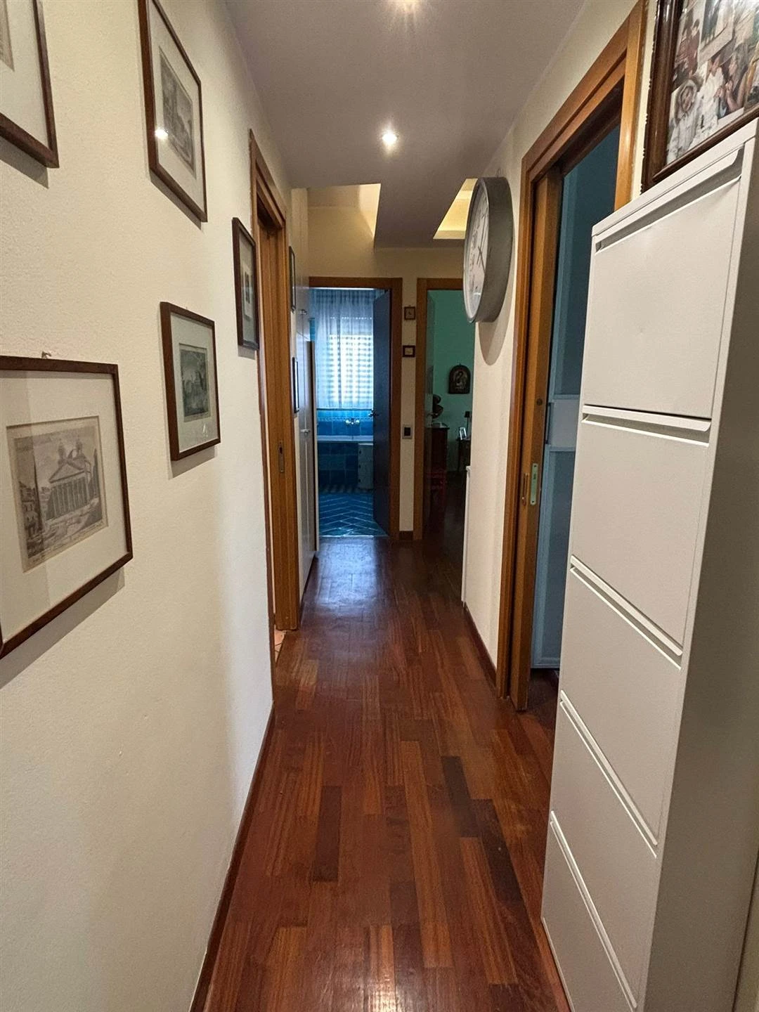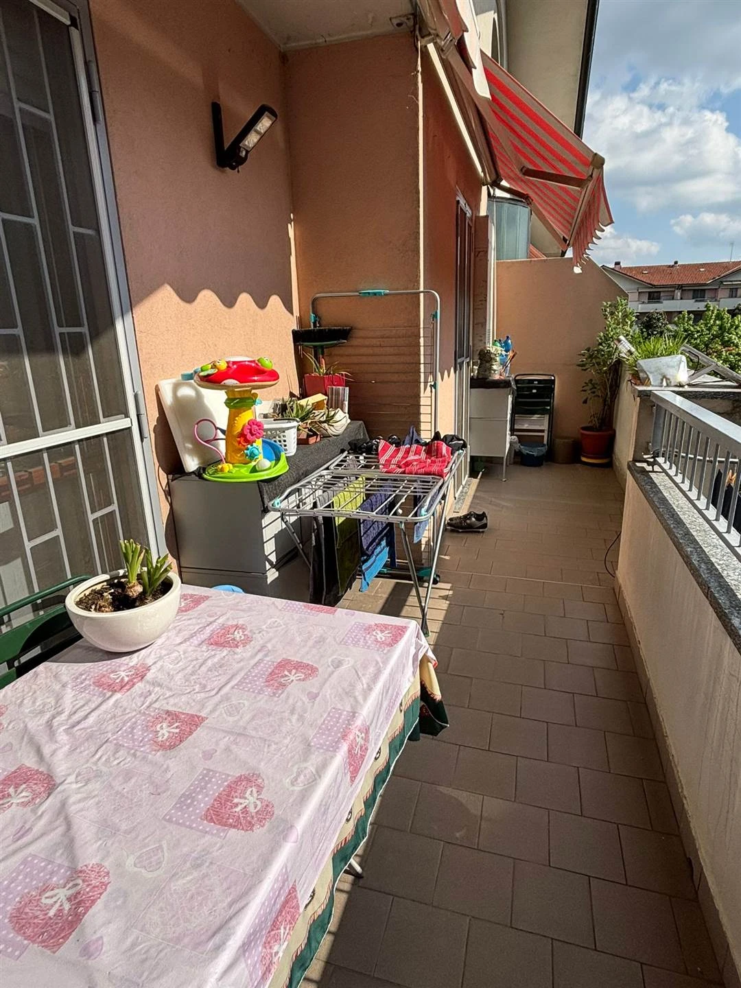 L'ingresso si apre su un accogliente disimpegno che conduce a una cucina abitabile e a un ampio soggiorno, entrambi valorizzati da un terrazzo esposto a ovest, perfetto per godersi la luce naturale e momenti di relax. La zona notte, ben separata, offre tre camere da letto spaziose, due delle quali con accesso al balcone, oltre a due bagni finestrati che garantiscono comfort e praticità.