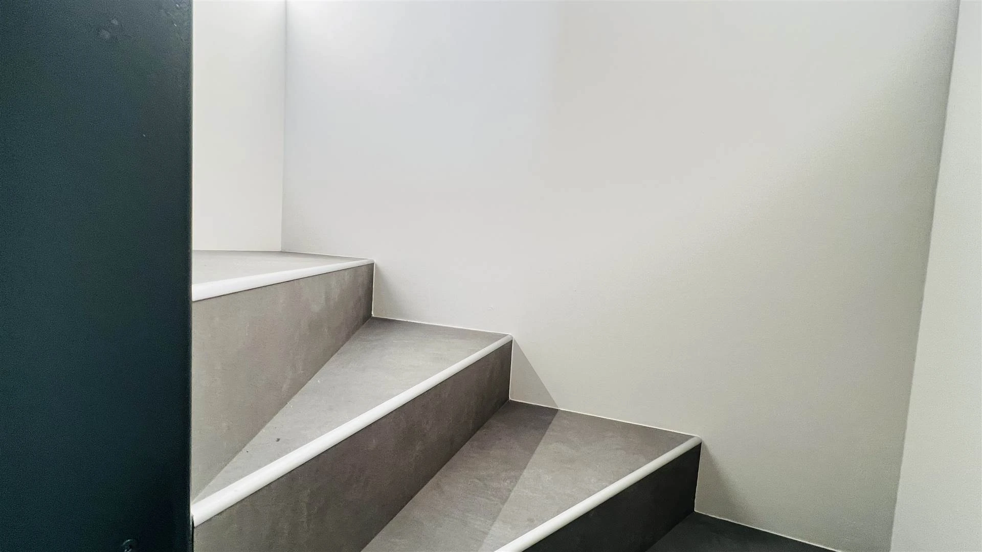 L'abitazione si divide su due livelli collegati da una scala interna curata nei dettagli. Al piano principale si trova l'ingresso che conduce a un soggiorno luminoso, una camera matrimoniale, una camera singola e un bagno con doccia rifinito con materiali moderni. Il piano interrato è occupato da una taverna climatizzata, utilizzabile come zona relax o spazio per gli ospiti, completa di predisposizione per una seconda cucina. Su questo livello si trovano anche una lavanderia attrezzata per lavatrice e asciugatrice con un secondo box doccia e un pratico ripostiglio.