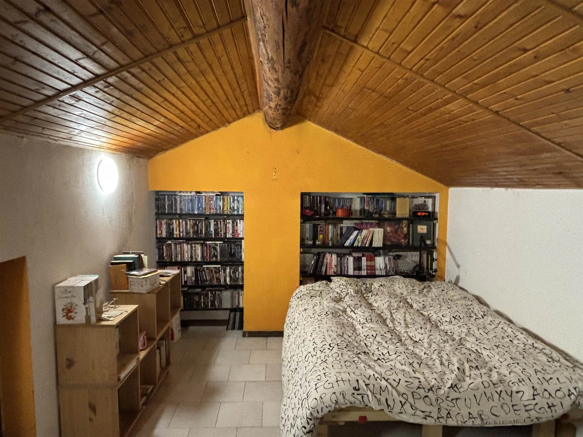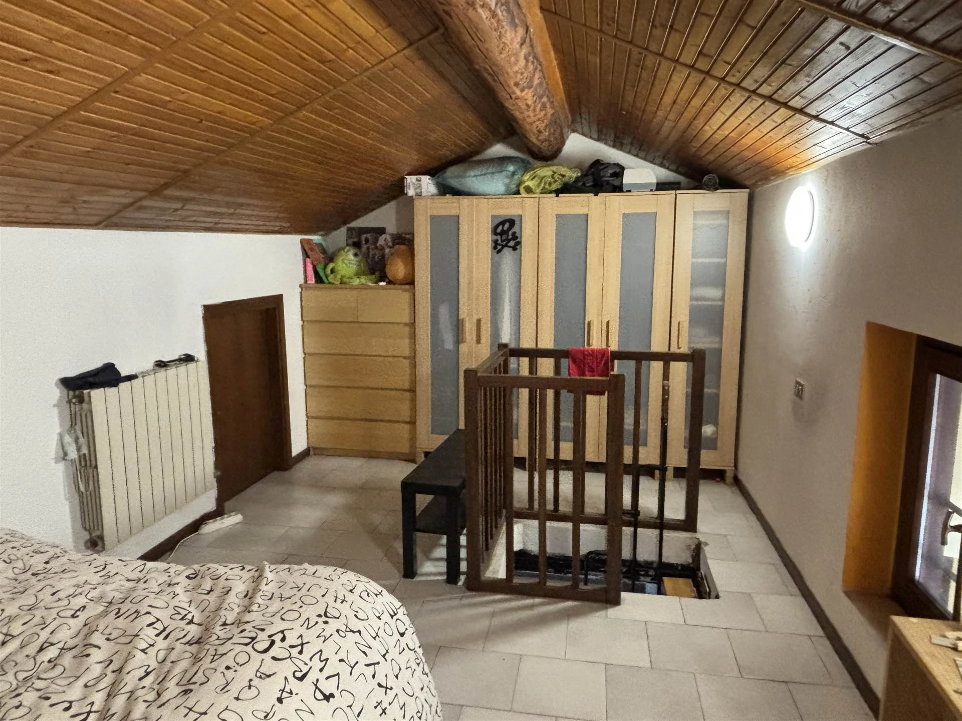 L'immobile si apre al primo piano con ingresso dal balatoio comune, conducendo a una zona giorno accogliente con angolo cottura, un disimpegno e un bagno. Una scala in legno interna collega al sottotetto, dove si trovano una comoda area notte matrimoniale e uno spazio adibito a deposito.