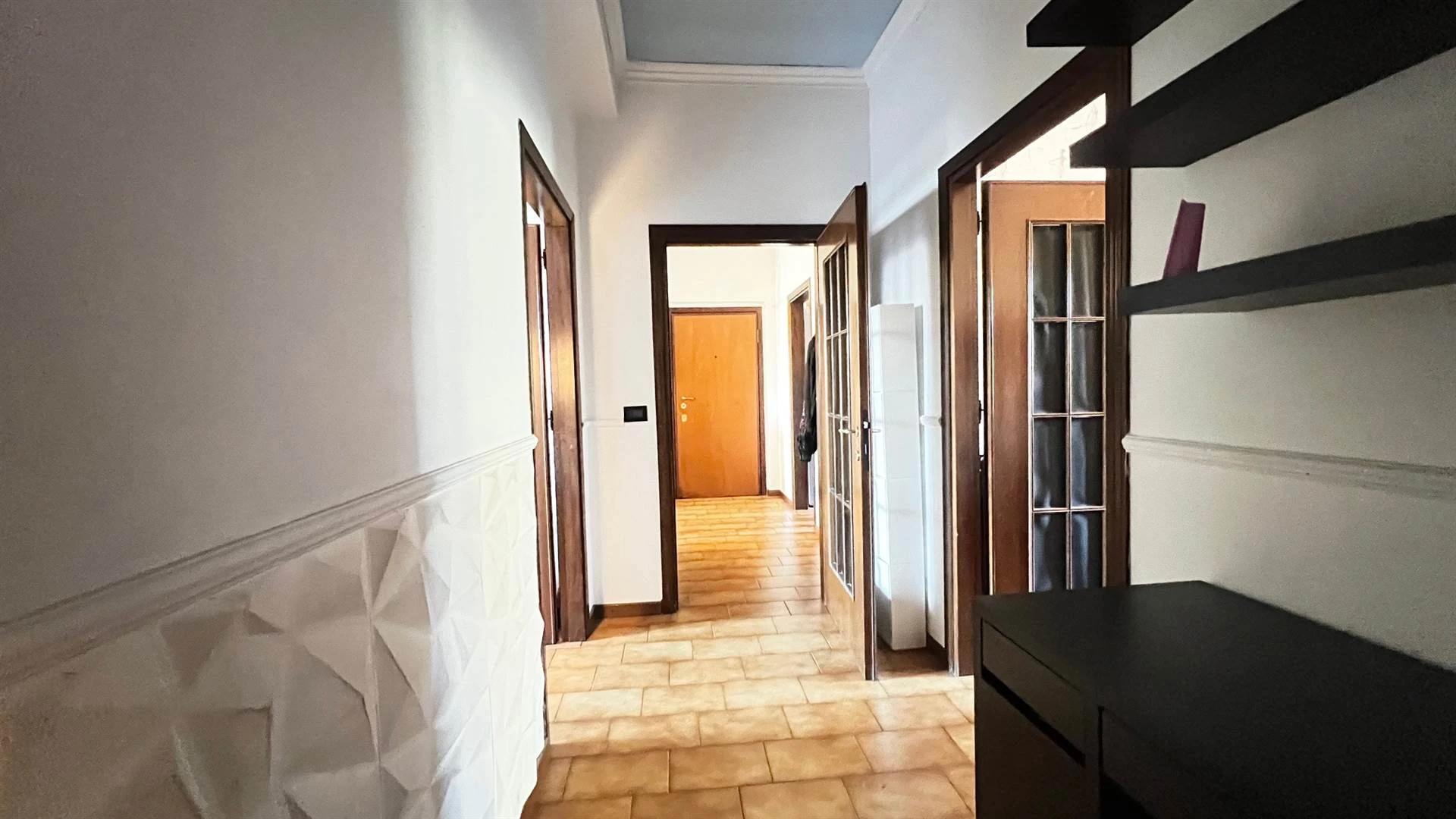 L'appartamento si distingue per la buona distribuzione degli spazi interni e per l'ottima luminosità garantita dall'esposizione e dall'assenza di piani superiori.