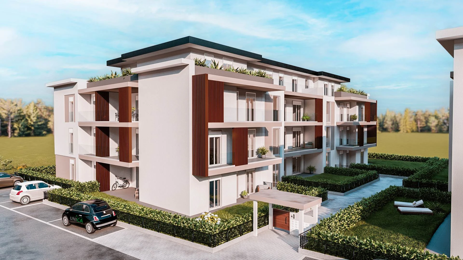 Lasciati conquistare dalla bellezza e dalla praticità del nuovo complesso "Residenza Celeste" a Trezzano Rosa. Scegli di vivere in un ambiente signorile, a pochi passi da tutti i principali servizi. La moderna realizzazione è costituita da due palazzine. Impianto termico totalmente autonomo, pannelli radianti a pavimento, raffrescamento in idro-split predisposto, pannelli fotovoltaici, ventilazione meccanica controllata, tapparelle in alluminio motorizzate, portoncini blindati classe 3, box con porte di tipo sezionale motorizzata, antenna e parabola satellitare di tipo digitale, per la sicurezza dei condomini verrà realizzato un impianti di videosorveglianza per il controllo dell'ingresso carrale interrato e dell'ingresso pedonale del vano scala, impianto dati e fibra, sono solo alcune delle caratteristiche del nuovo intervento ad alta efficienza energetica. La facciata dove trovano massimo risalto i terrazzi e i giardini privati nasconderà una solida struttura antisismica protetta da un efficiente isolamento termo-acustico che interesserà sia il perimetro esterno sia quello interno tra un appartamento e l'altro. Il risparmio e l'indipendenza energetica rappresentano l'elemento centrale dello stabile che prevedrà l'assegnazione ad ogni appartamento di un panello fotovoltaico individuale come da legge 10. Dal Q.E. verra predisposto un corrugato per una linea diretta al box dove sarà possibile installare una batteria di accumulo/stazione di ricarica automobili elettriche. In ciascuna unità immobiliare verrà realizzato impianto domotico a due moduli funzionanti, integrato con l'impianto elettrico e predisposto per la successiva installazione di eventuali moduli aggiuntivi. Saranno utilizzati impianti Smart Home di Vimar con modulo controllo carichi, apertura tapparelle e gateway che permette la connessione dell'impianto alla rete internet per il controllo dell'impianto tramite applicazione per smartphone "Vimar View" per controllare la casa connessa con una interfaccia semplice ed intuitiva. Si tratta di appartamenti all'avanguardia privi di qualunque barriera architettonica e ideali per coppie di tutte le età o famiglie già consolidate e con figli che amano la tranquillità di una zona residenziale senza rinunciare alla comodità dei servizi cittadini giornalieri. Gli edifici si trovano infatti in una posizione che consente di raggiungere a piedi le scuole, farmacia, supermercato, negozi di vicinato, cosi come la fermata autobus per stazione metropolitana di Gessate. Termine di esecuzione dell'immobile è previsto entro il 30 dicembre 2025. Attico - C14 Stupendo attico posto al terzo piano di tre locali più doppi servizi di 126,19 mq commerciali. Appartamento di 93,89 mq con terrazzo di 97,66 mq. Ingresso nel soggiorno con angolo cottura con affaccio sul luminoso terrazzo che circonda tutto l'appartamento con predisposizione per piscina, disimpegno notte, cameretta, bagno e camera matrimoniale con bagno in camera.