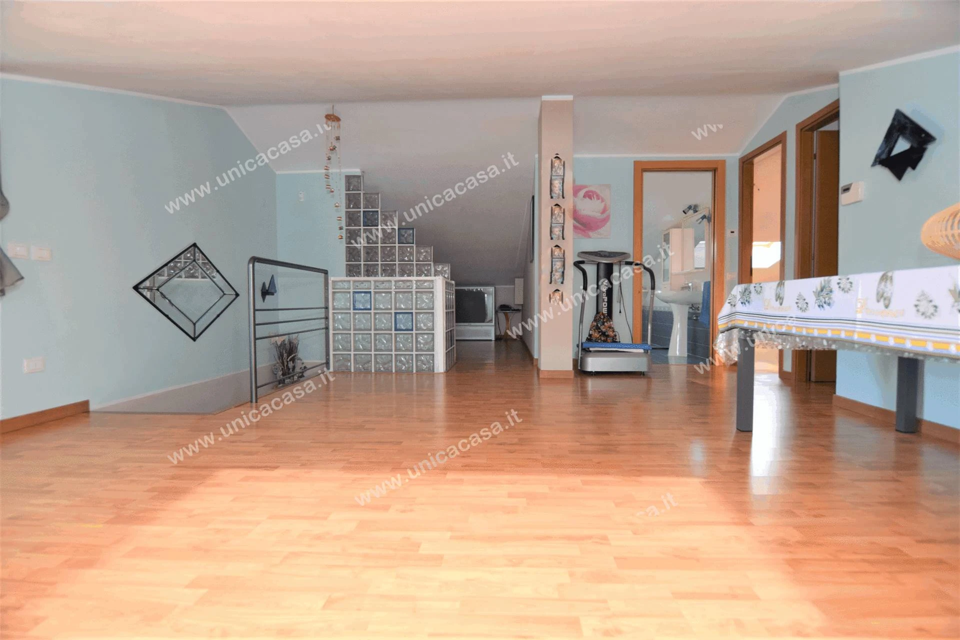 al piano primo – mansarda non abitabile ultimata con ottime finiture, avente altezza media di circa 2 m e dove ci si può tranquillamente ricavare una zona relax, zona hobby, laboratorio e molto altro ancora; completa di bagno e per un totale di 75 m2;