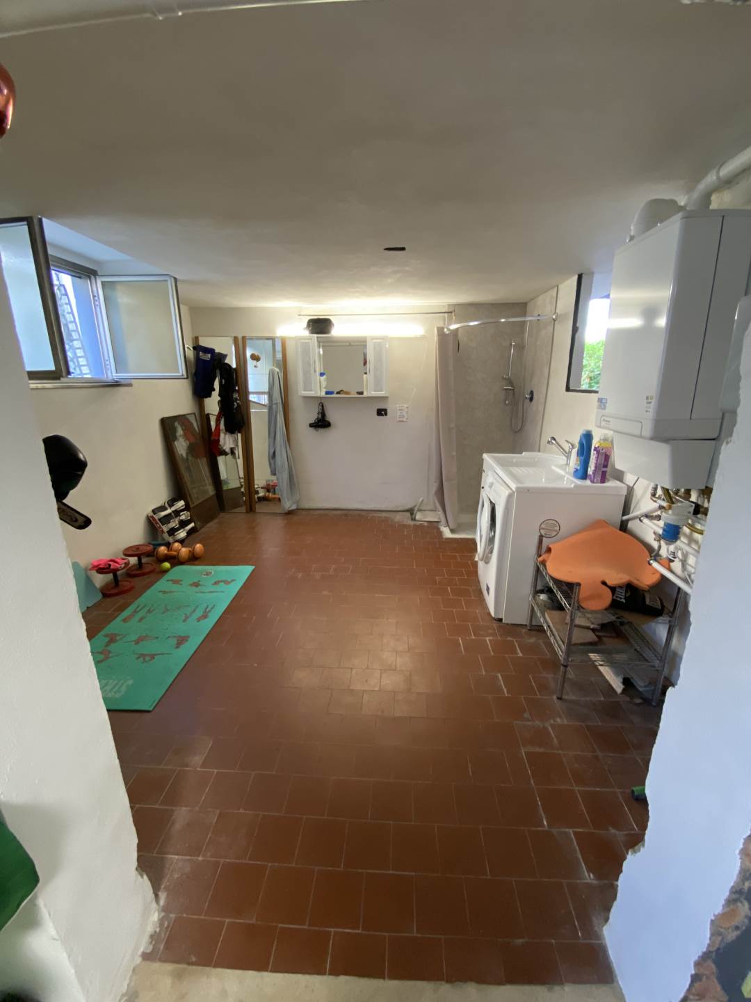 Una scala esterna conduce alla seconda parte di abitazione composta da: ingresso con un disimpegno, una cucina abitabile, un soggiorno, un disimpegno notte, un bagno e due camere da letto. A completare la proprietà, al piano seminterrato troviamo una spaziosa taverna di 70 m² con locale lavanderia e giardino esclusivo.