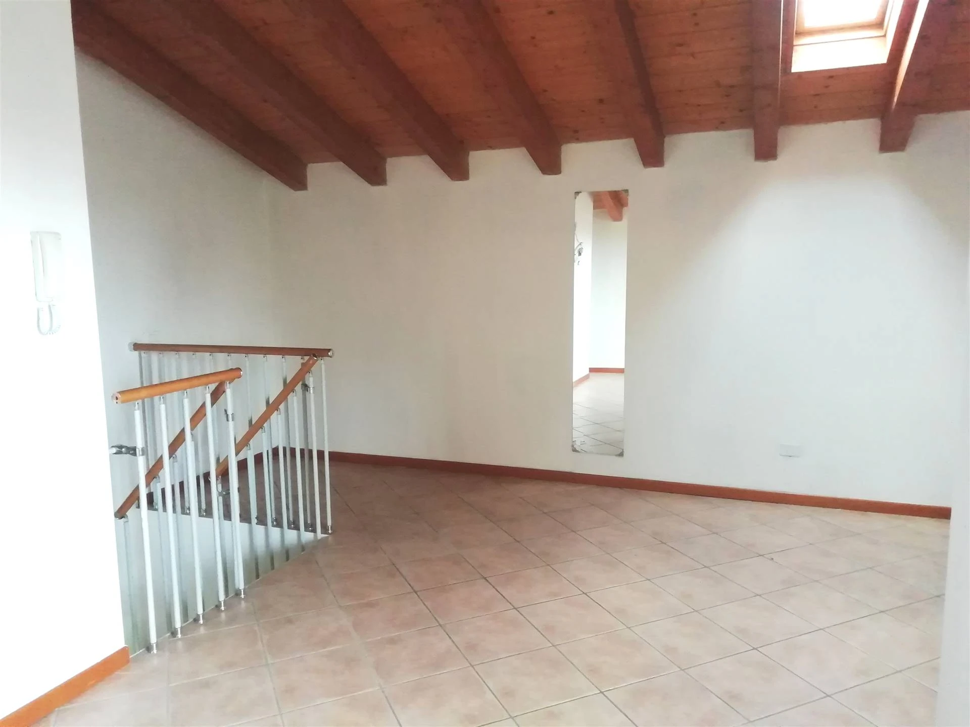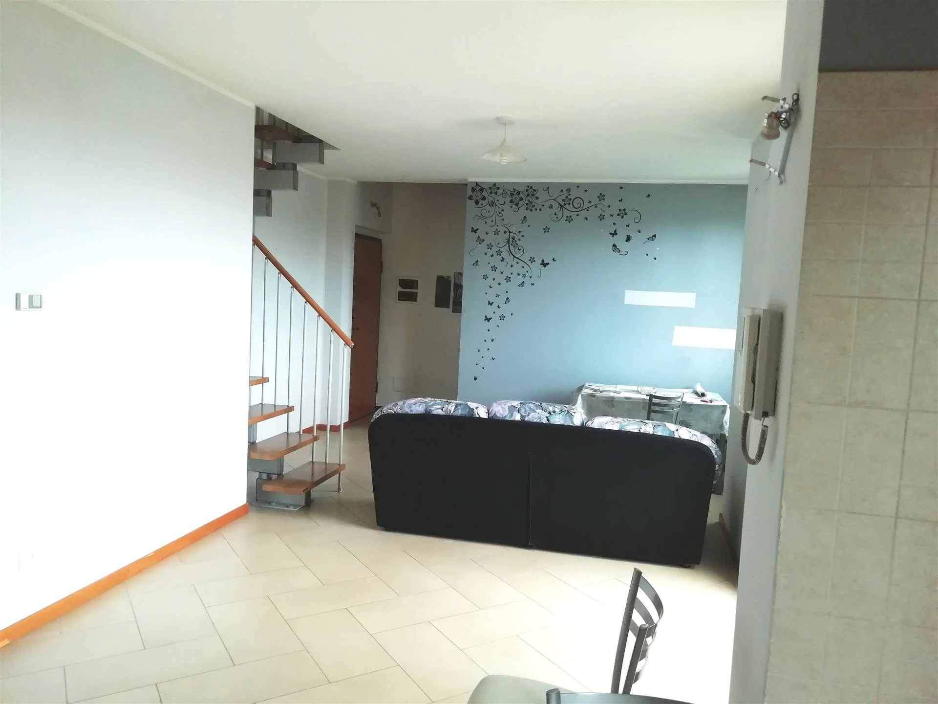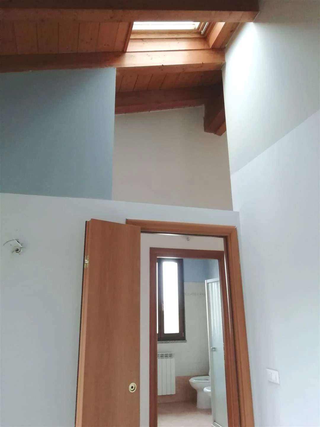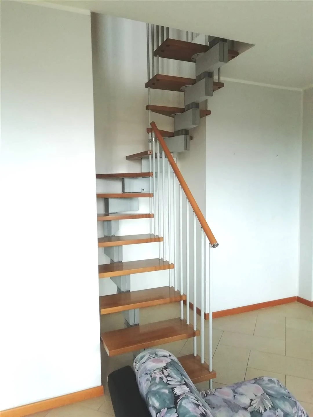 L'appartamento è così composto: ingresso con ripostiglio, soggiorno con cucina a vista, disimpegno, 2 camere da letto, bagno, 2 balconi; al piano superiore servita da comoda scala interna, terza camera mansardata con travi in legno a vista e balcone. A completare la proprietà nel piano interrato grande autorimessa piastrellata .