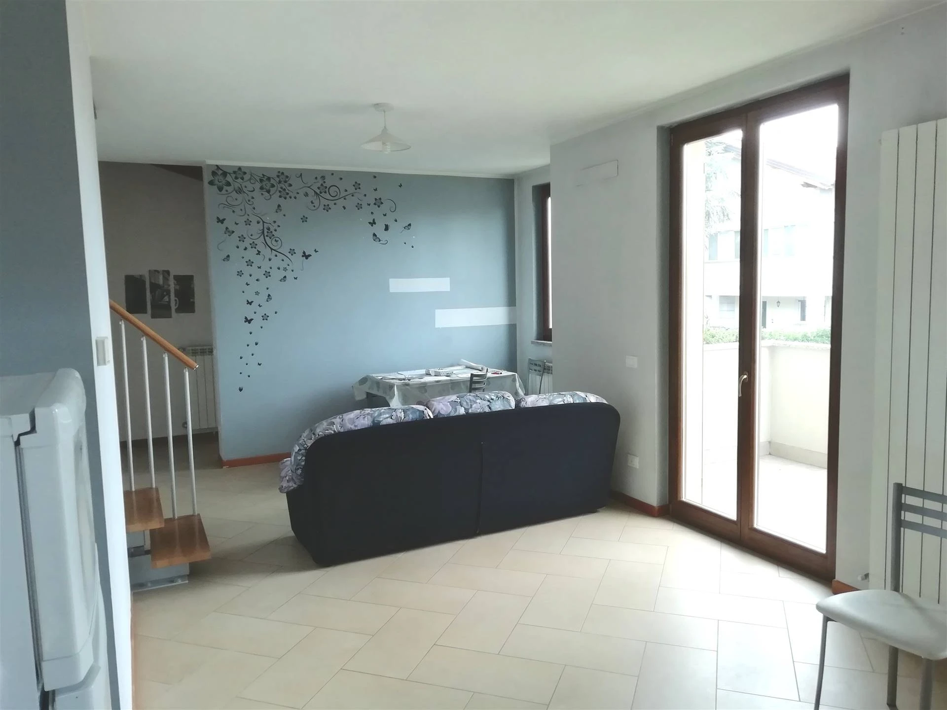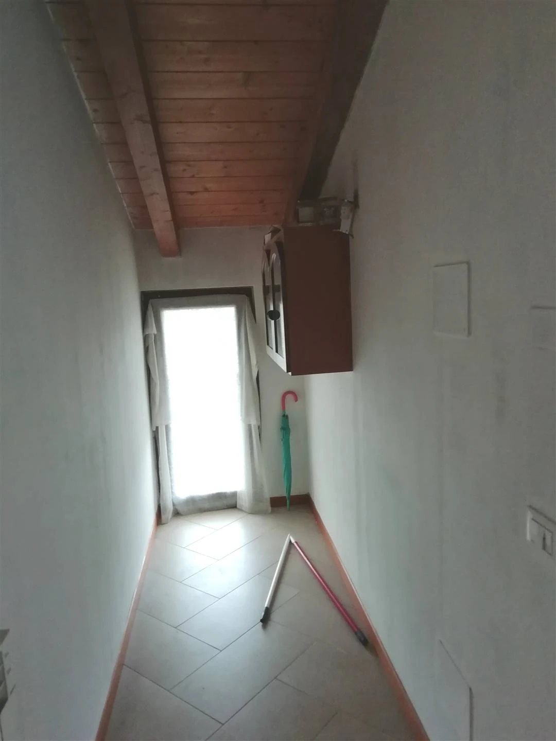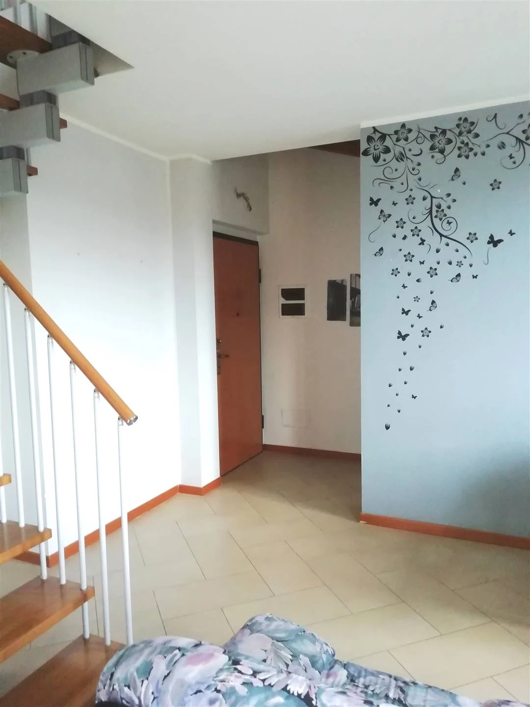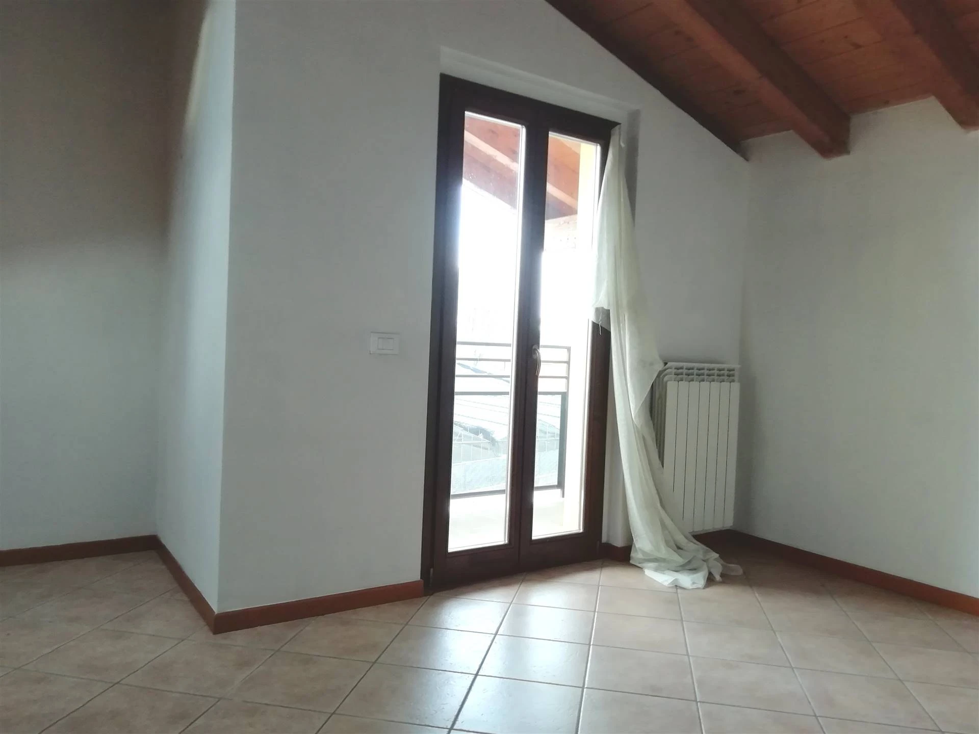 L'appartamento è così composto: ingresso con ripostiglio, soggiorno con cucina a vista, disimpegno, 2 camere da letto, bagno, 2 balconi; al piano superiore servita da comoda scala interna, terza camera mansardata con travi in legno a vista e balcone. A completare la proprietà nel piano interrato grande autorimessa piastrellata .