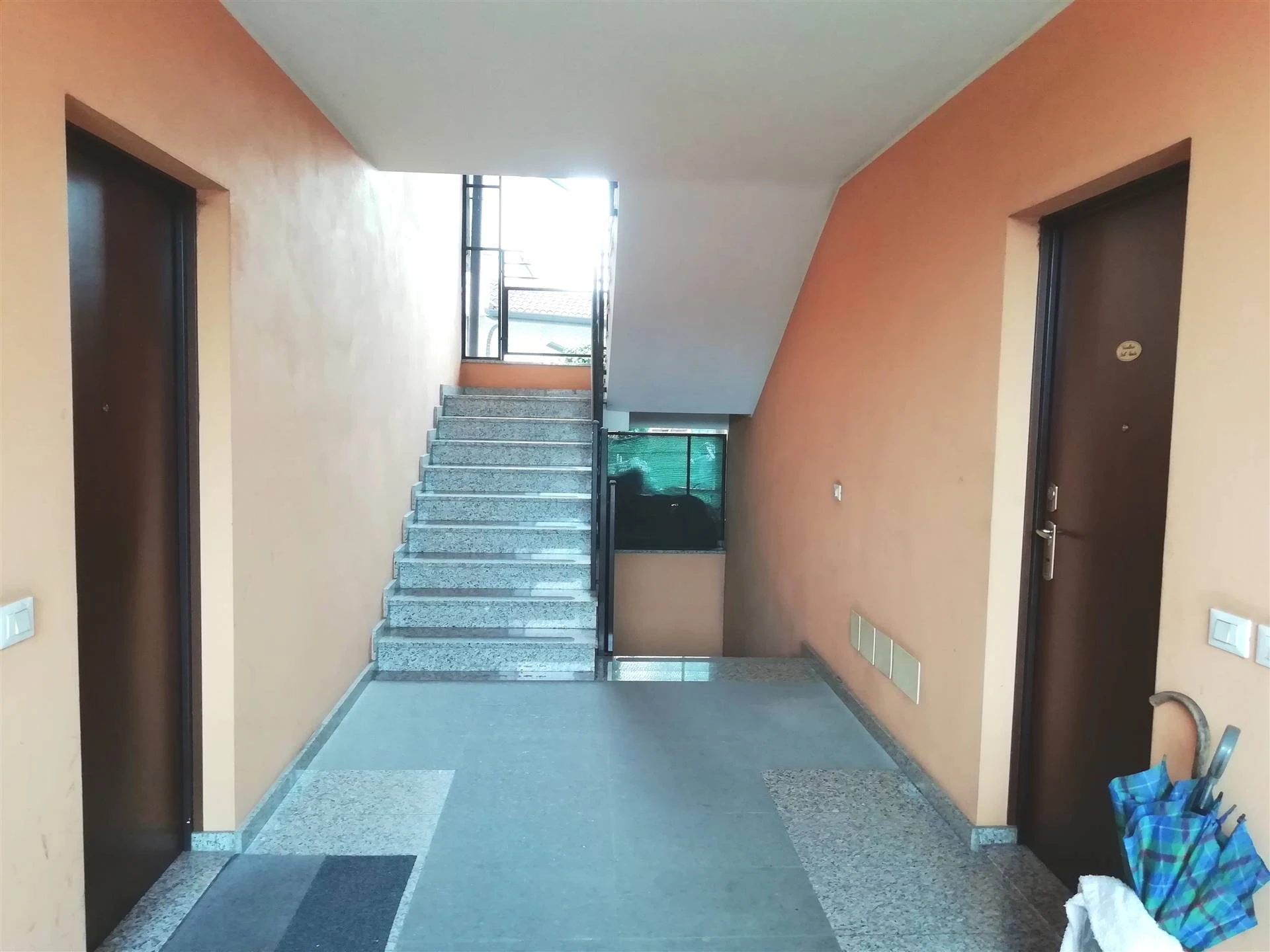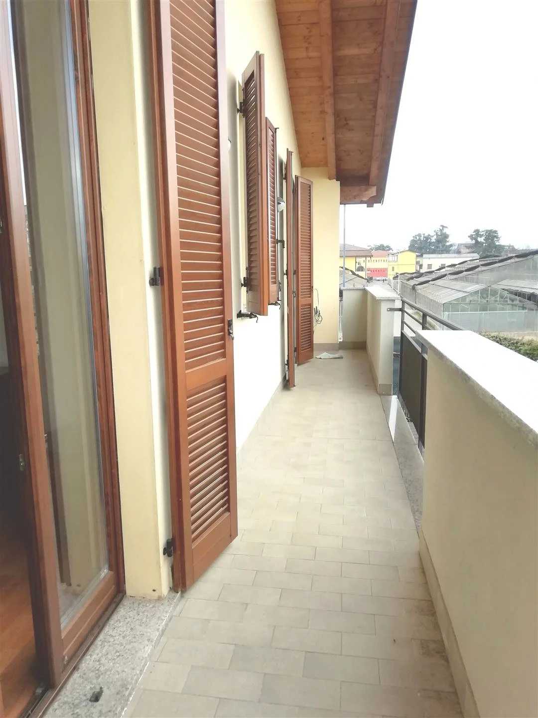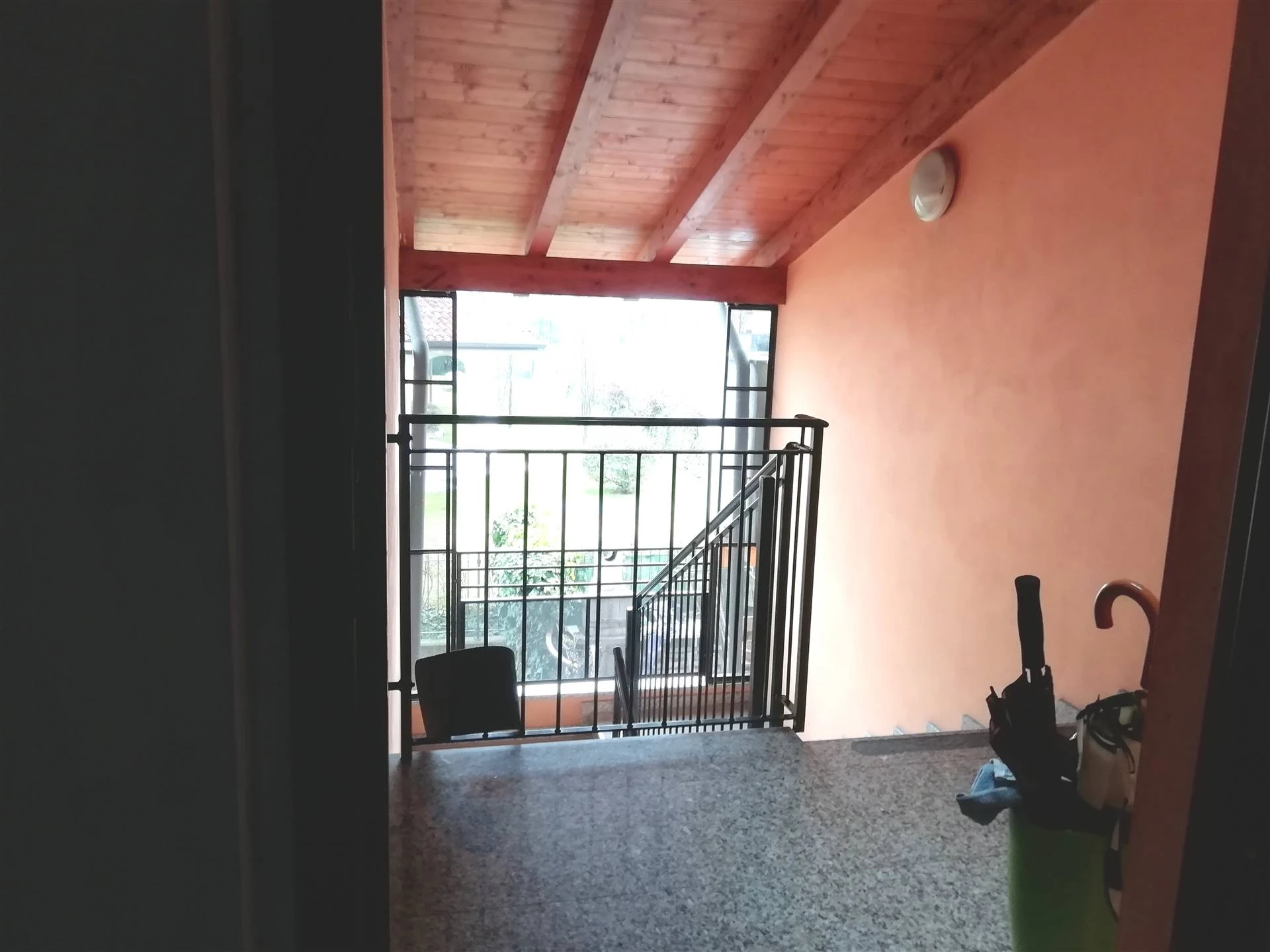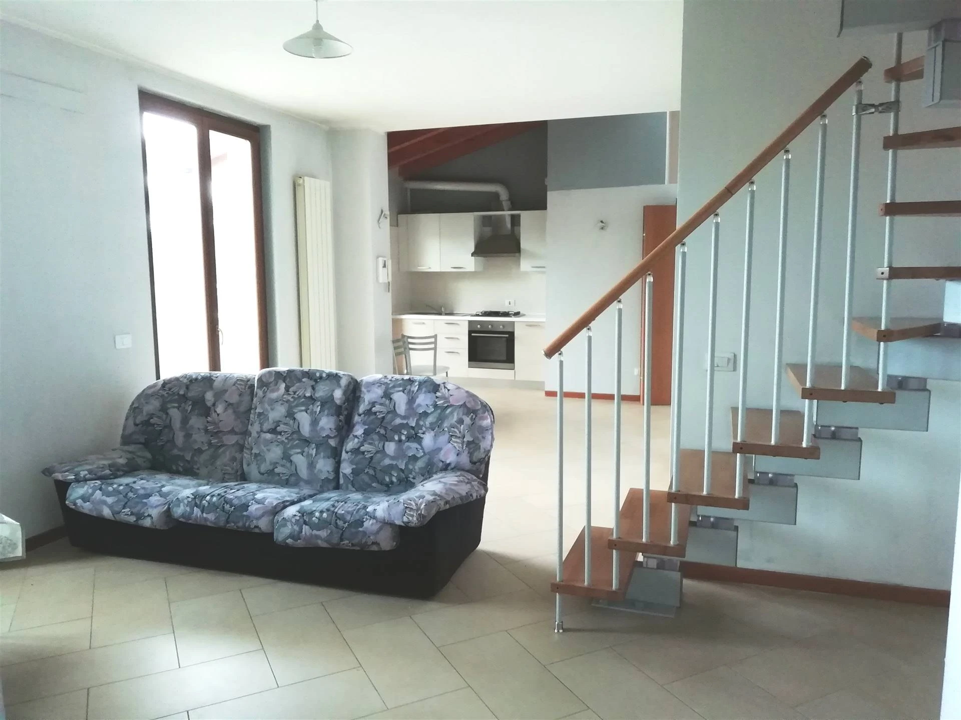 L'appartamento è così composto: ingresso con ripostiglio, soggiorno con cucina a vista, disimpegno, 2 camere da letto, bagno, 2 balconi; al piano superiore servita da comoda scala interna, terza camera mansardata con travi in legno a vista e balcone. A completare la proprietà nel piano interrato grande autorimessa piastrellata .