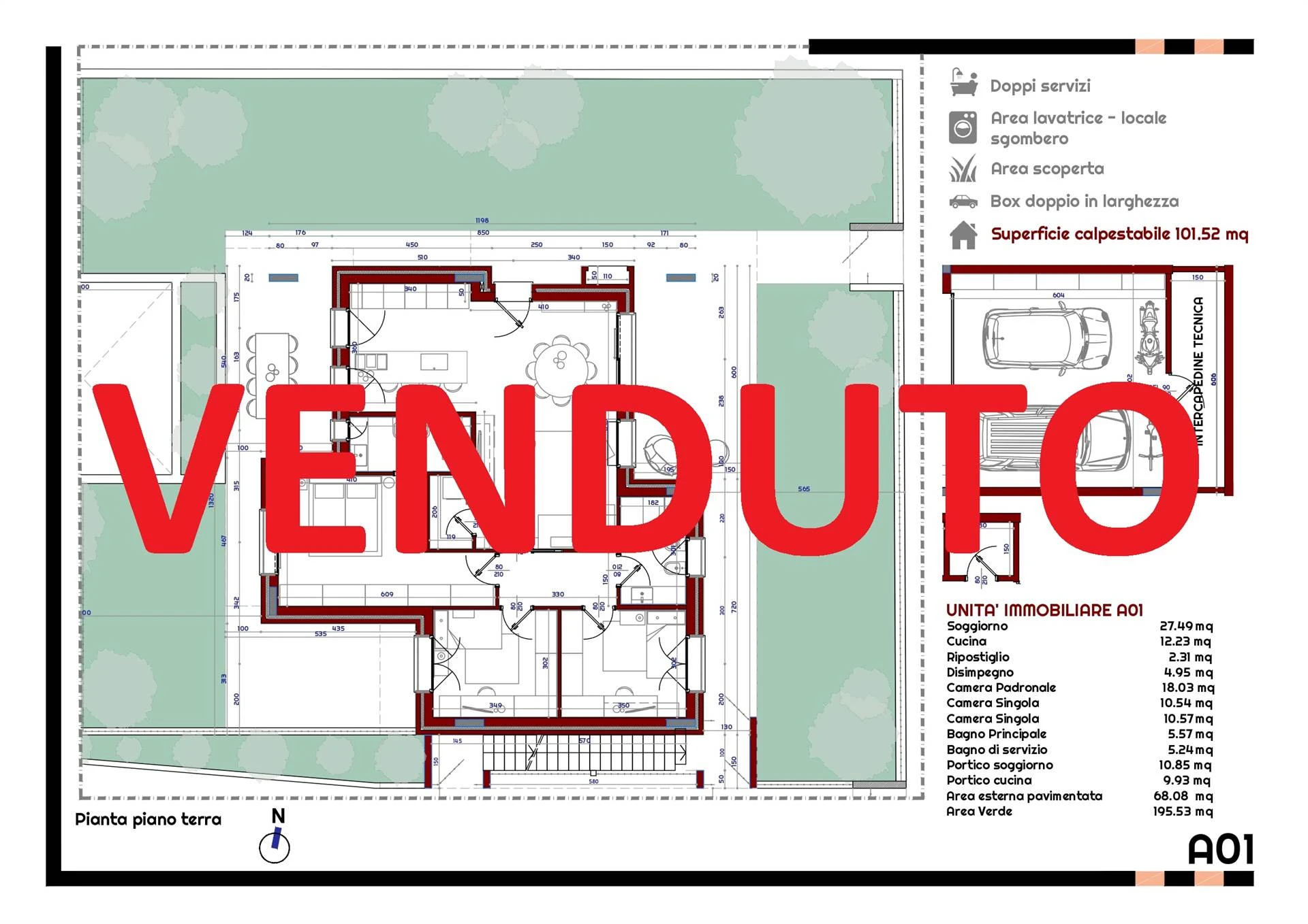 Anche per queste soluzioni sono inclusi box doppio in larghezza e cantina.