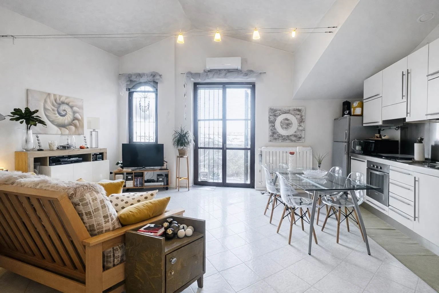 Appena entri vieni accolto da una zona giorno ampia e armoniosa, dove soggiorno, cucina e sala da pranzo dialogano in un unico ambiente pensato per vivere ogni momento: dalla colazione con la luce del mattino alle cene con amici.