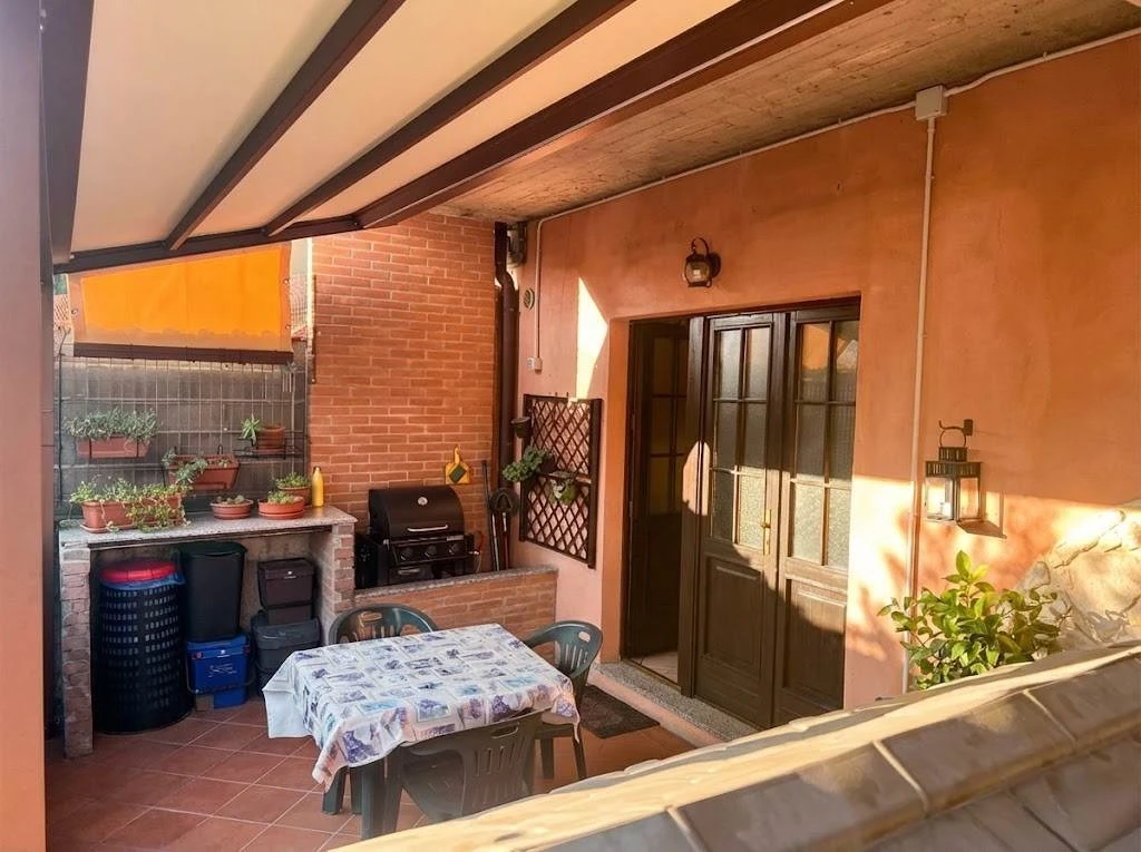 Dal portoncino blindato si accede alla luminosa zona giorno e alla cucina separata, molto ampia e abitabile. Dalla cucina si ha accesso a un'esclusiva zona esterna sotto un patio coperto con tettoia, perfetta per godere di uno spazio all'aperto fruibile tutto l'anno. Quest'area è già attrezzata con allacci per acqua ed elettricità, ideale per le tue grigliate in famiglia.
