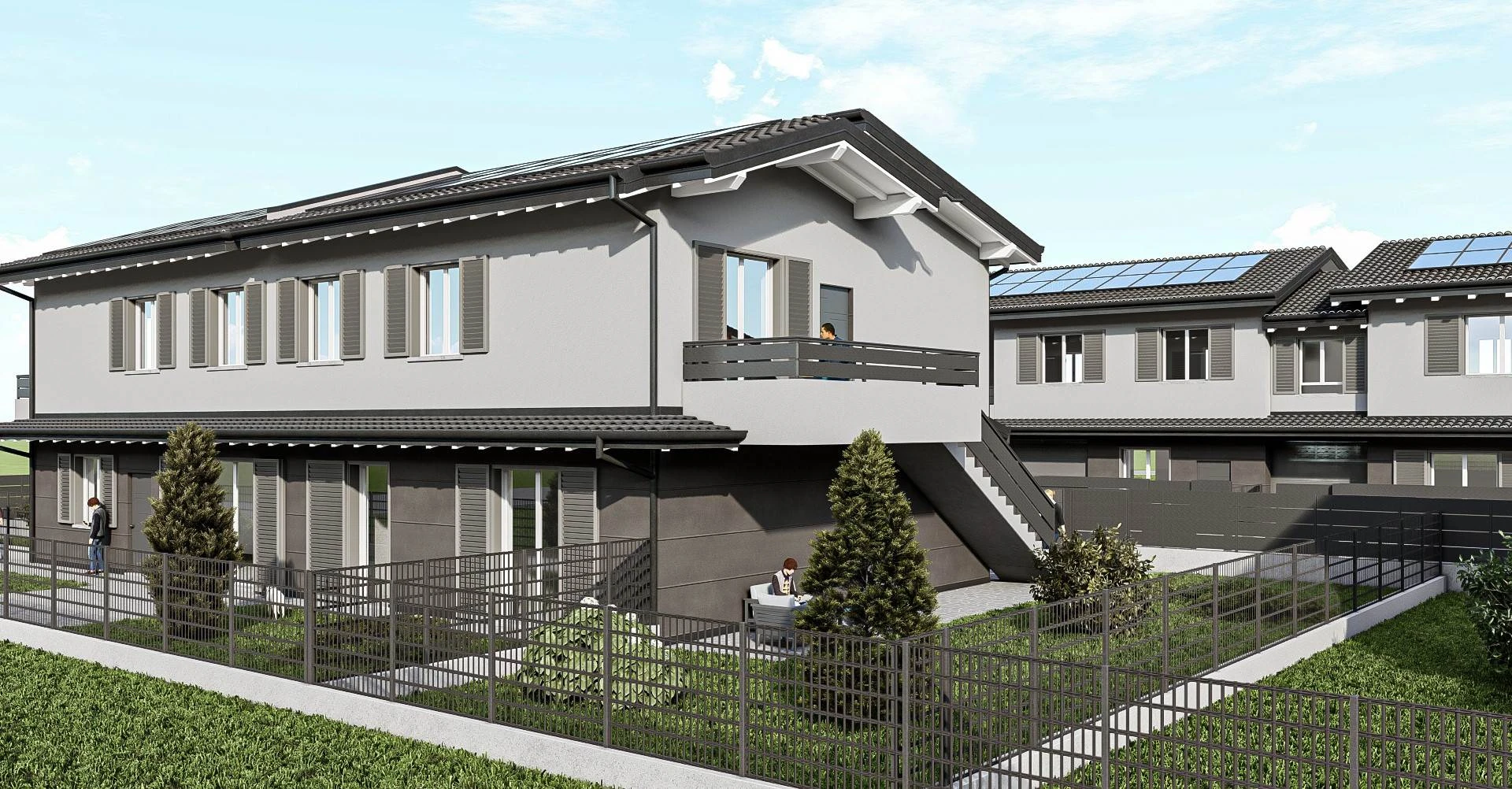 appartamento in VILLA di nuova costruzione esteso su un unico piano abitativo caratterizzato da ingresso INDIPENDENTE con ampio giardino privato di 98mq! Il QUADRILOCALE, di ben 91mq, gode della tripla esposizione, possiede il soggiorno con cucina A VISTA, le TRE camere da letto, bagno e ripostiglio. La zona giorno ha lo sfogo sul vivibile balcone!! Il Box è posto al piano terra all'interno della soluzione immobiliare. Al piano terra è collocato un pratico PORTICO ideale per stare all'aperto nelle belle stagioni!! Senza alcuna spesa condominiale!