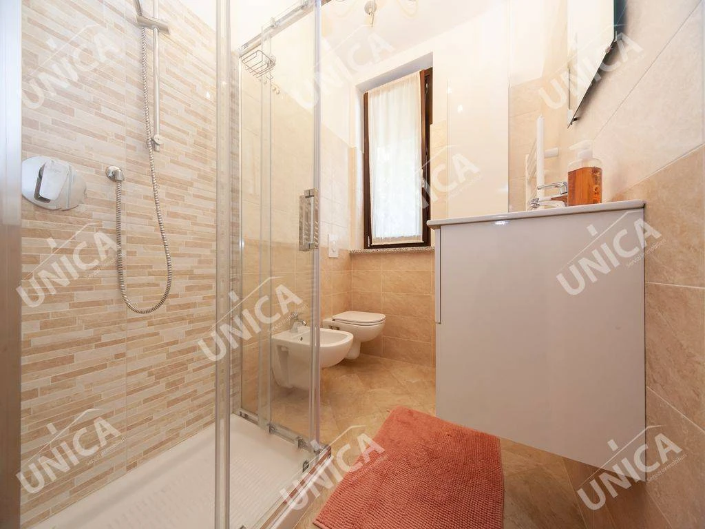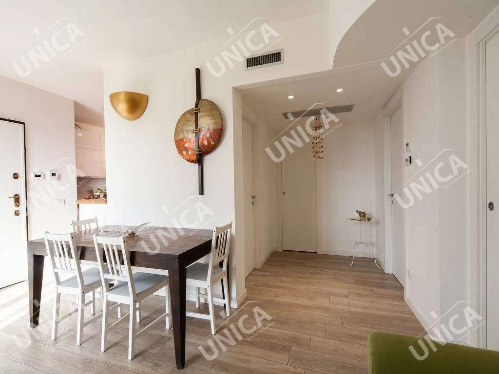 Questo appartamento è dotato di riscaldamento a pavimento, pavimenti in gres, videocitofono, impianto di aria condizionata, pannello solare termico e isolamento termico ed acustico nei muri perimetrali.