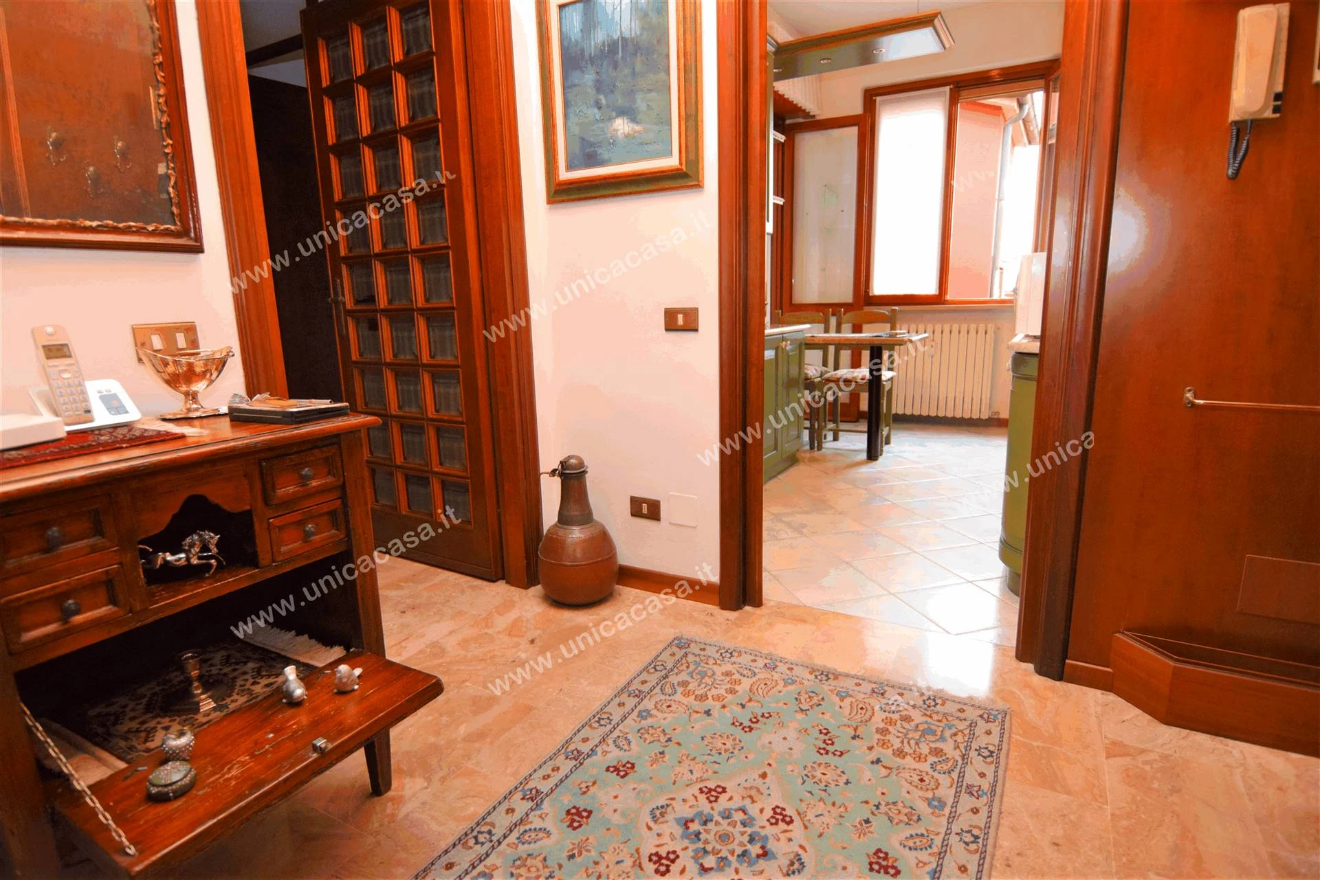 Le finiture sono molto signorili e comprendono: portoncino blindato, serramenti in legno con doppi vetri e persiane in legno, porte interne in legno, pavimentazione in ceramica in cucina e bagno, marmo in soggiorno e parquet nelle camere da letto; inoltre nel soggiorno c'è un bel camino, tenda da sole nella loggia, riscaldamento centralizzato CON TERMO VALVOLE CHE CONTABILIZZANO I CONSUMI....