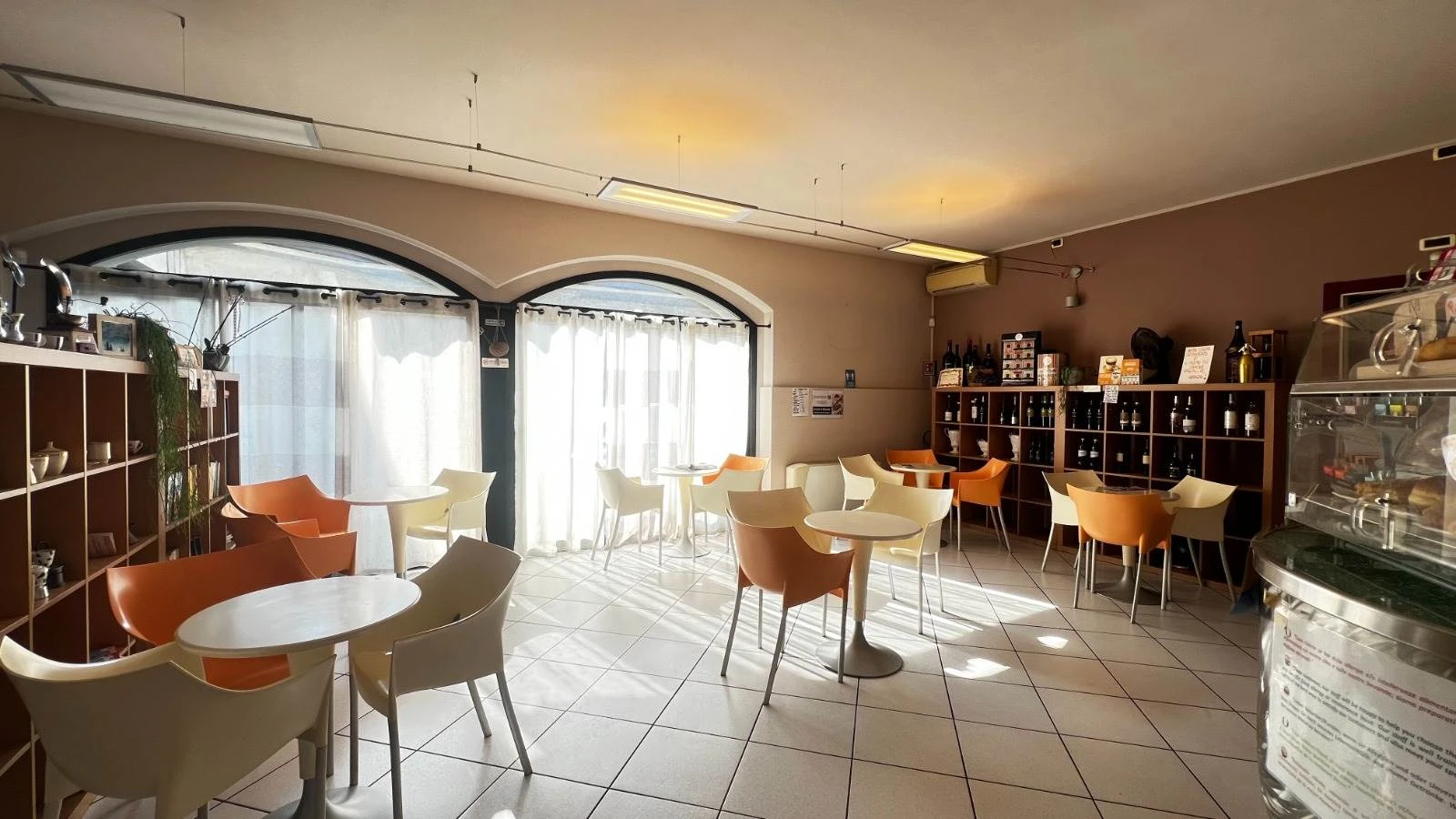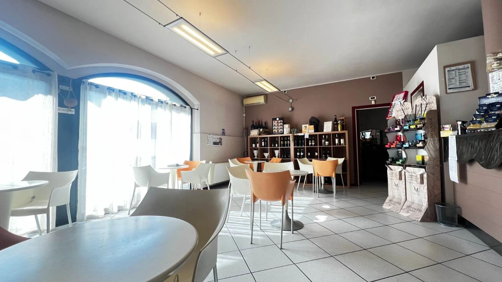 Il locale è accogliente, pulito e già pronto per lavorare, con locale adibito alle preparazioni alimentari, panini e uno spazio espositivo che si presta bene anche a un'idea di american bar o a una gestione semplice e funzionale.