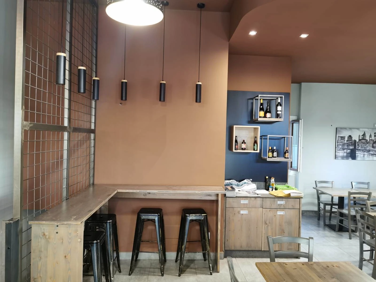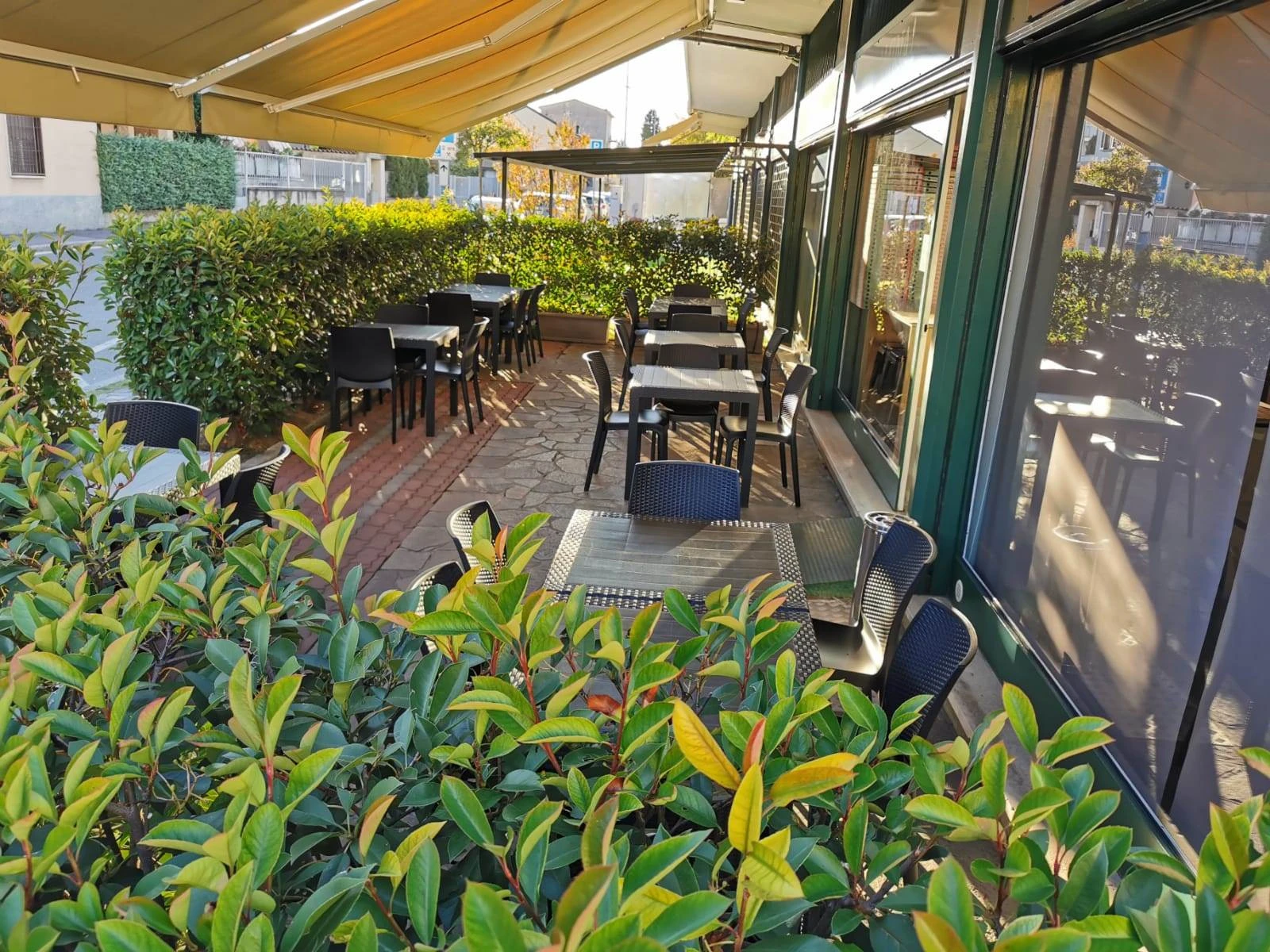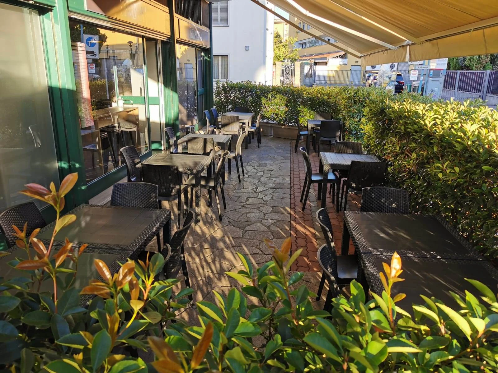All'esterno, un ampio dehor di circa 50 mq, dotato di tende per la copertura, permette di accogliere fino a 30 posti a sedere nella bella stagione, offrendo così un ulteriore spazio per la clientela.