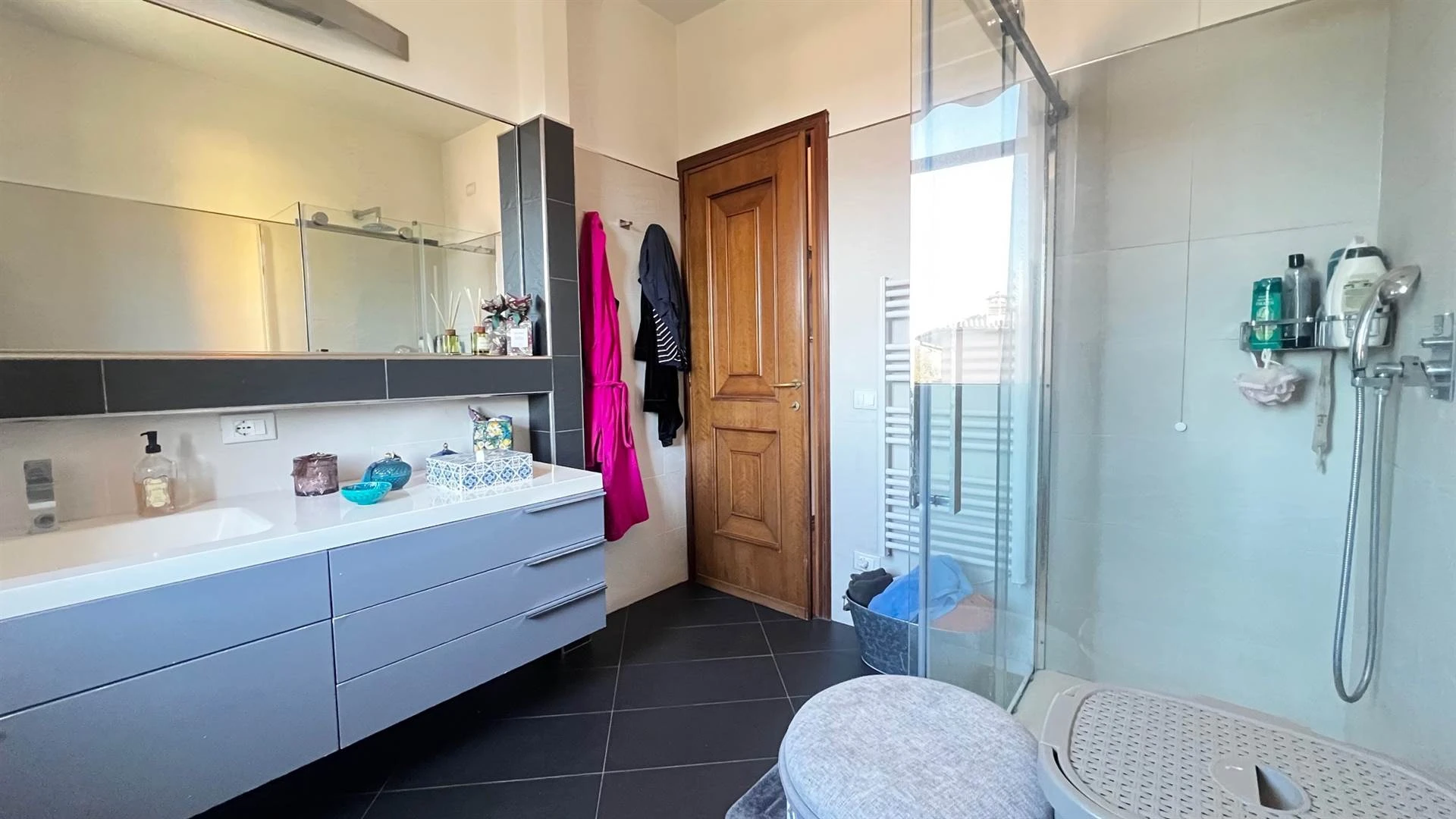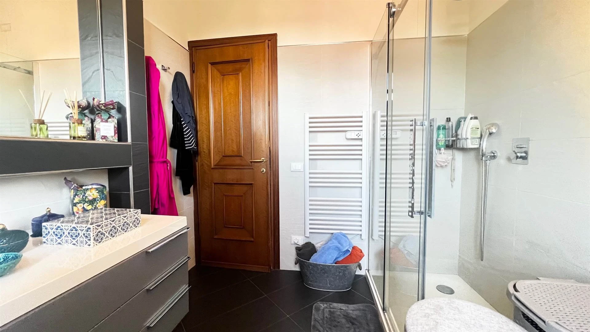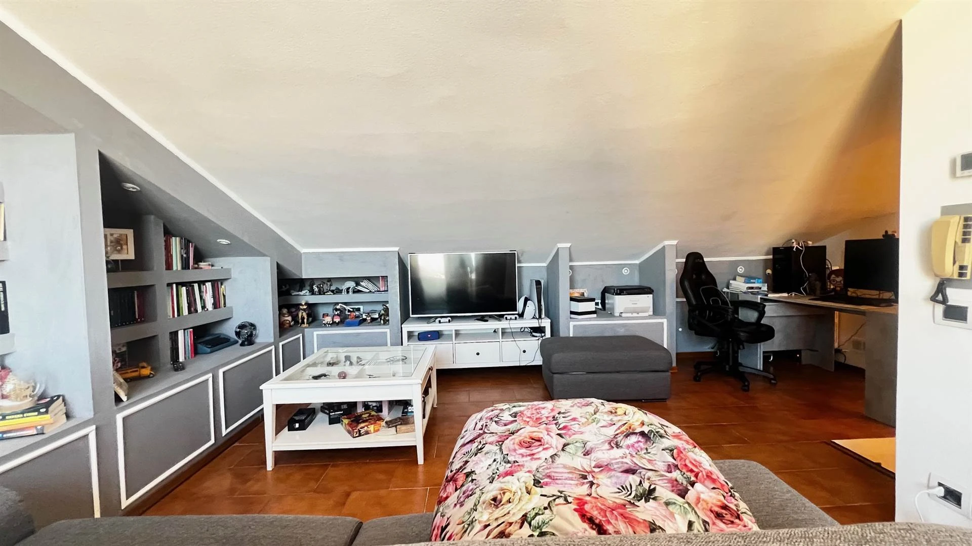 -Piano terra: accogliente soggiorno, cucina abitabile con balcone ampio e bagno di servizio; -Piano primo: tre camere da letto e bagno principale; -Piano secondo (mansardato): spazioso open space con bagno privato e affaccio su grande terrazzo vivibile, perfetto per momenti di relax; -Piano interrato: taverna, cantina e box doppio in lunghezza collegato internamente all'abitazione.