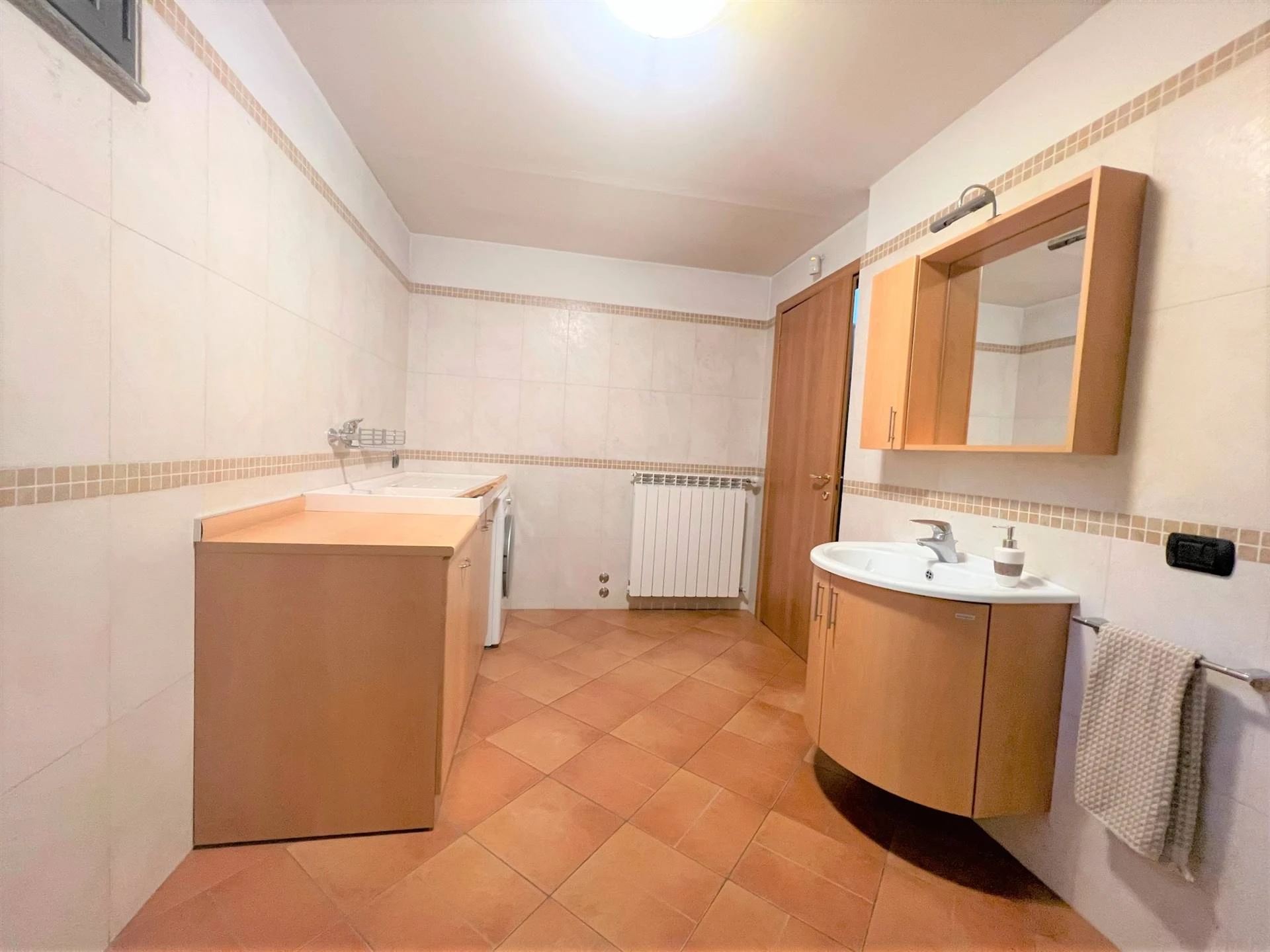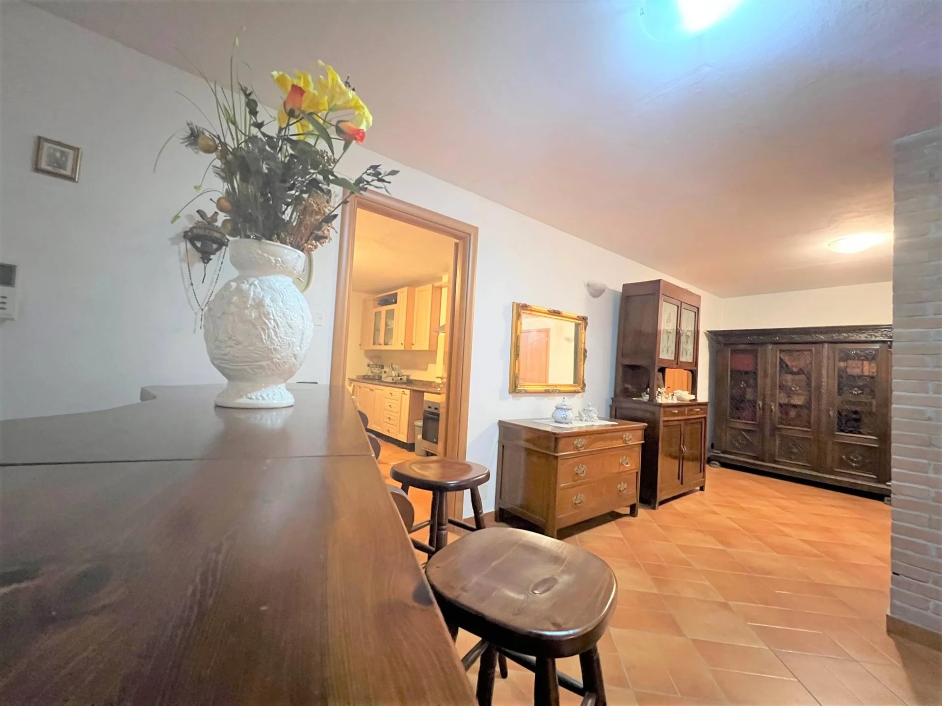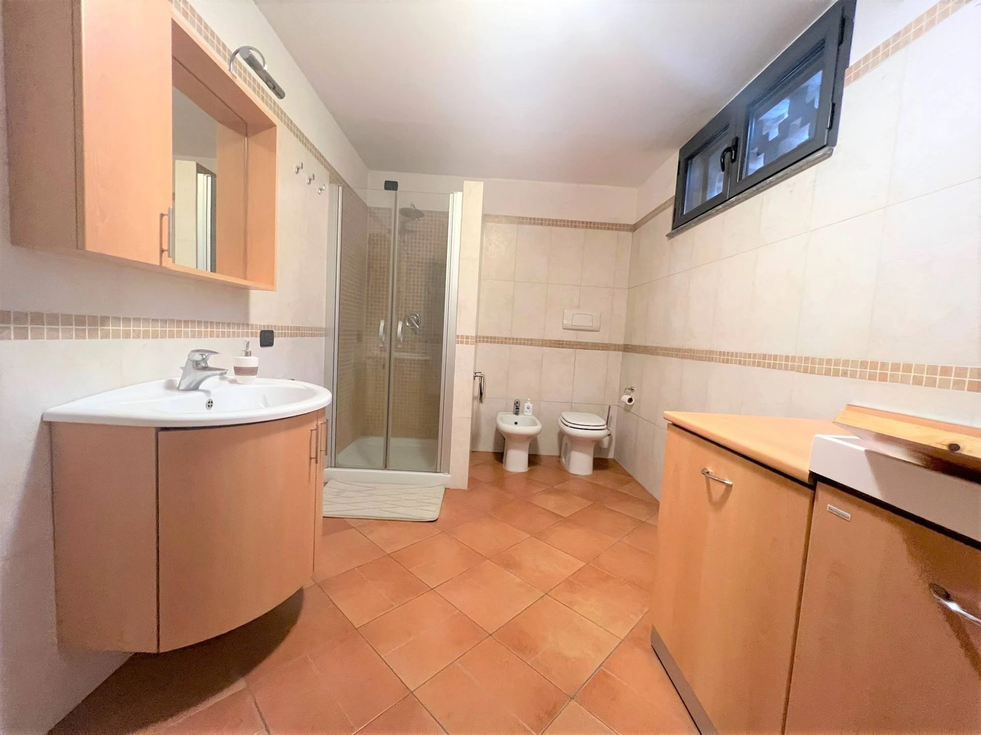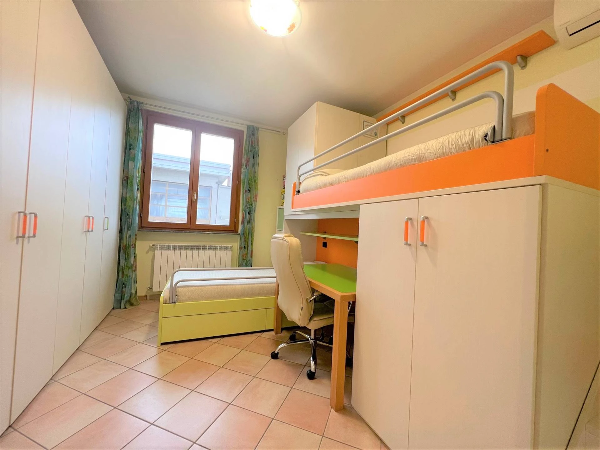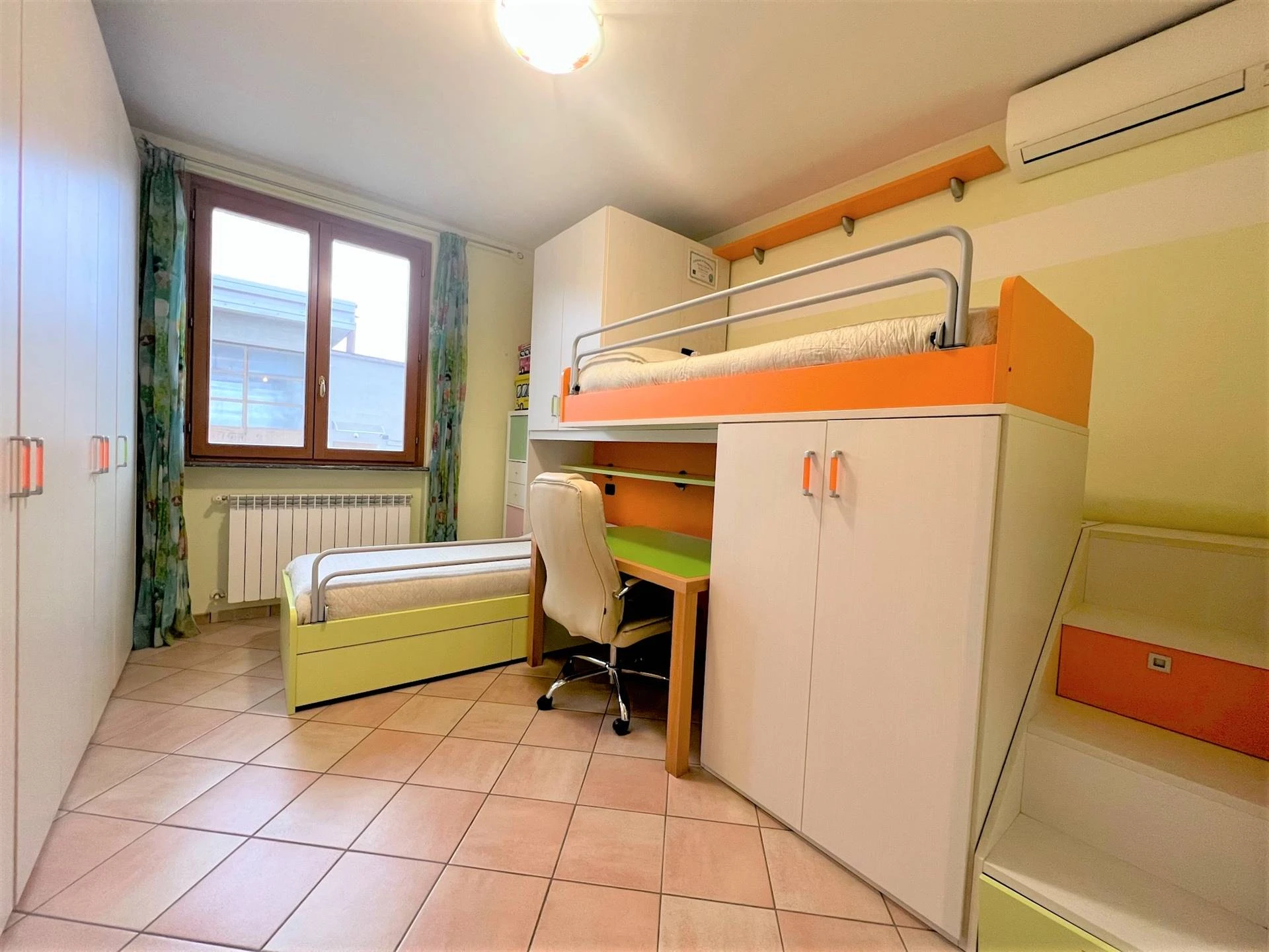All'ingresso principale, situato al piano semirialzato, sarai accolto in un'area giorno luminosa e accogliente. Qui troverai un ampio soggiorno e una cucina abitabile di generose dimensioni. Adiacente all'ingresso, una camera attualmente adibita a studio, ma che potrà facilmente soddisfare le tue esigenze personali.
