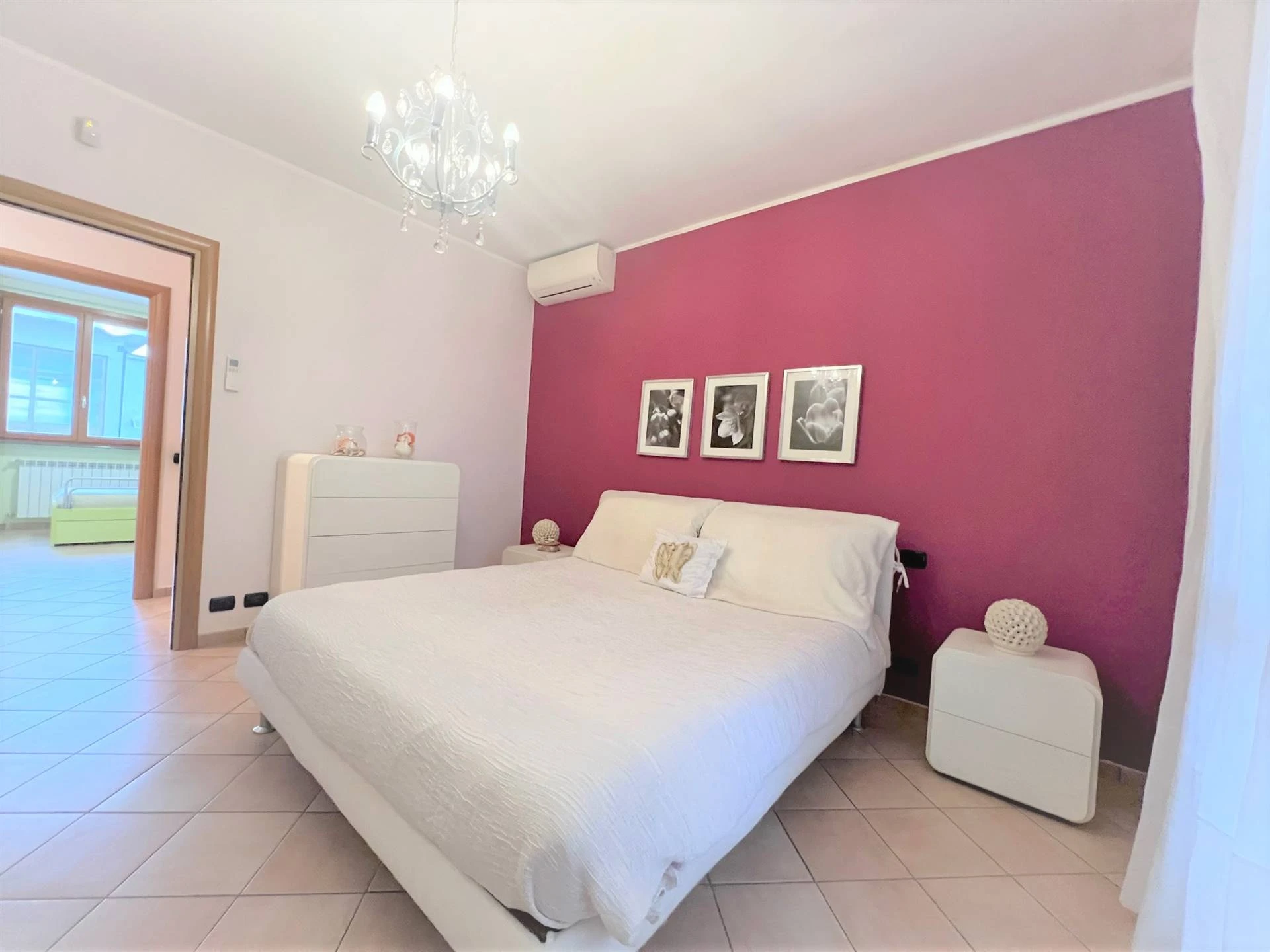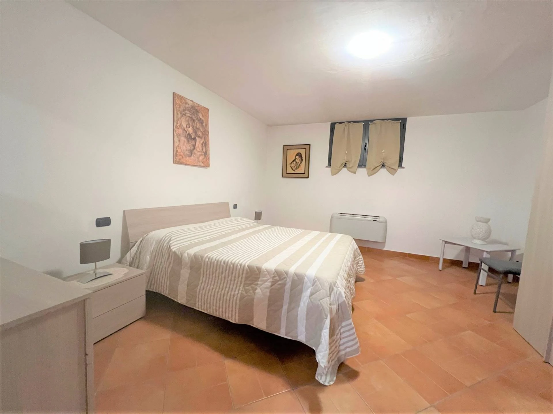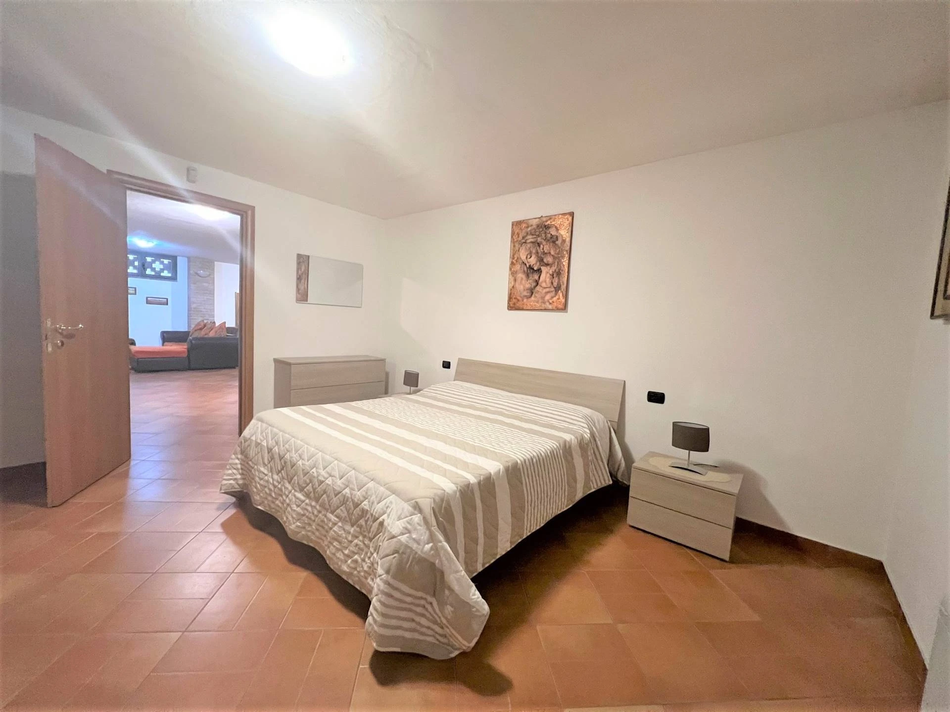 Attraverso un comodo disimpegno, accederai alla zona notte, dove troverai una spaziosa camera da letto principale e una seconda camera da letto, entrambe arredate con gusto. Un ampio bagno con vasca e doccia completano questa sezione della villa.