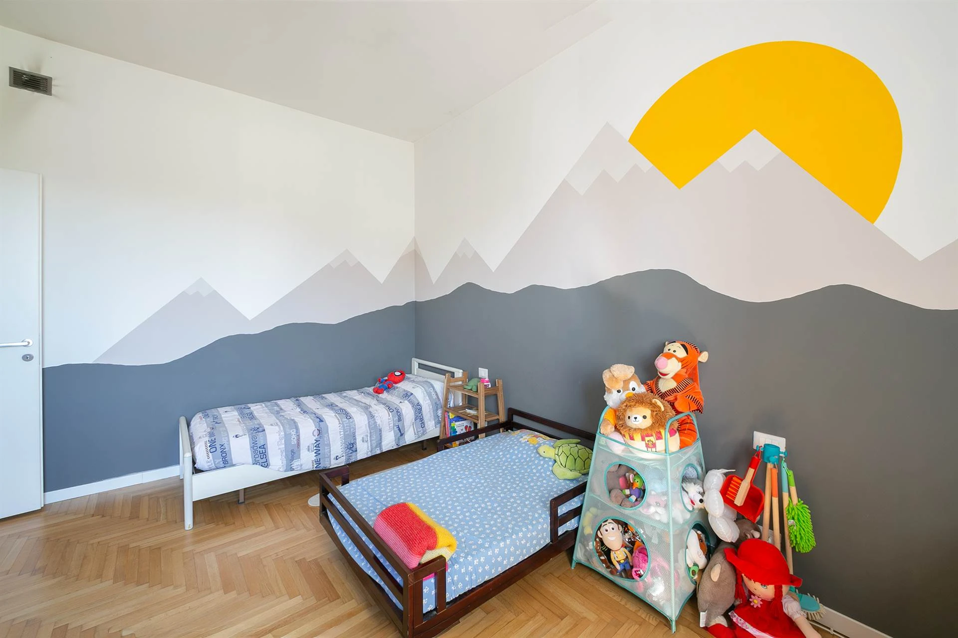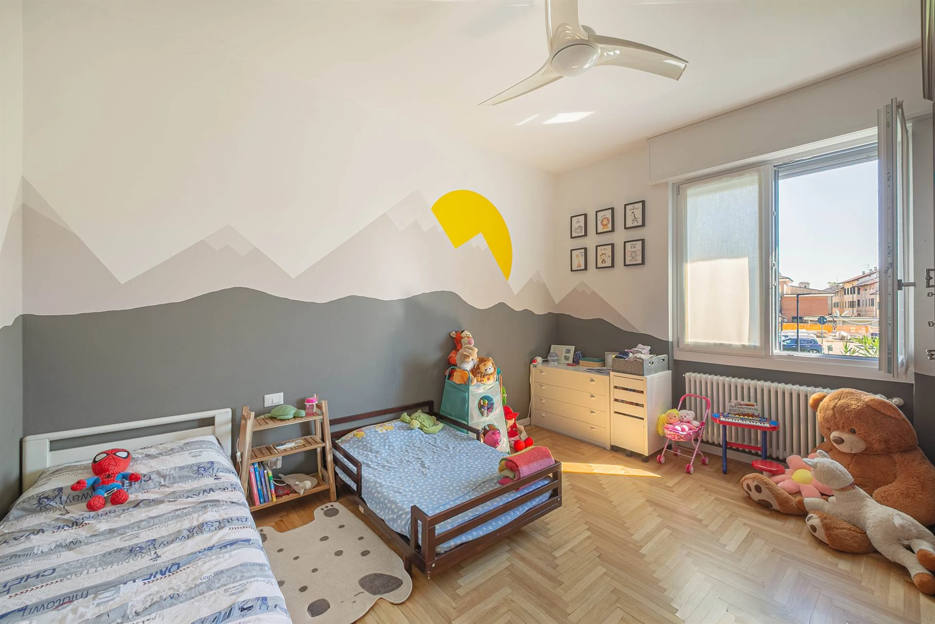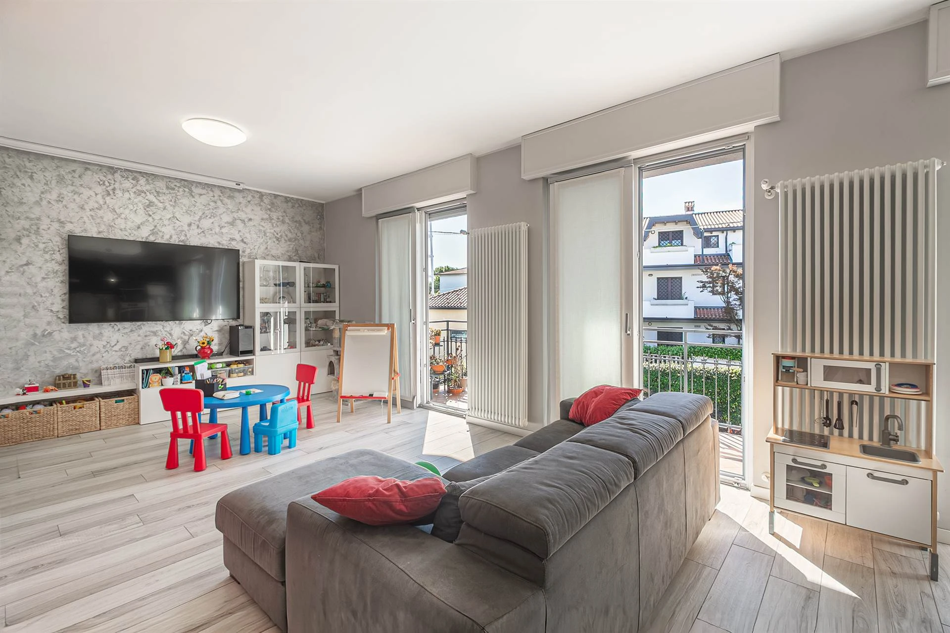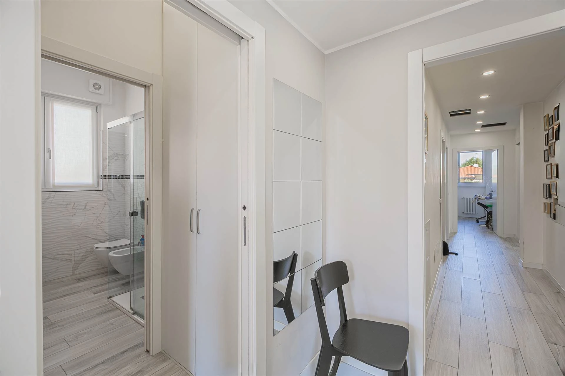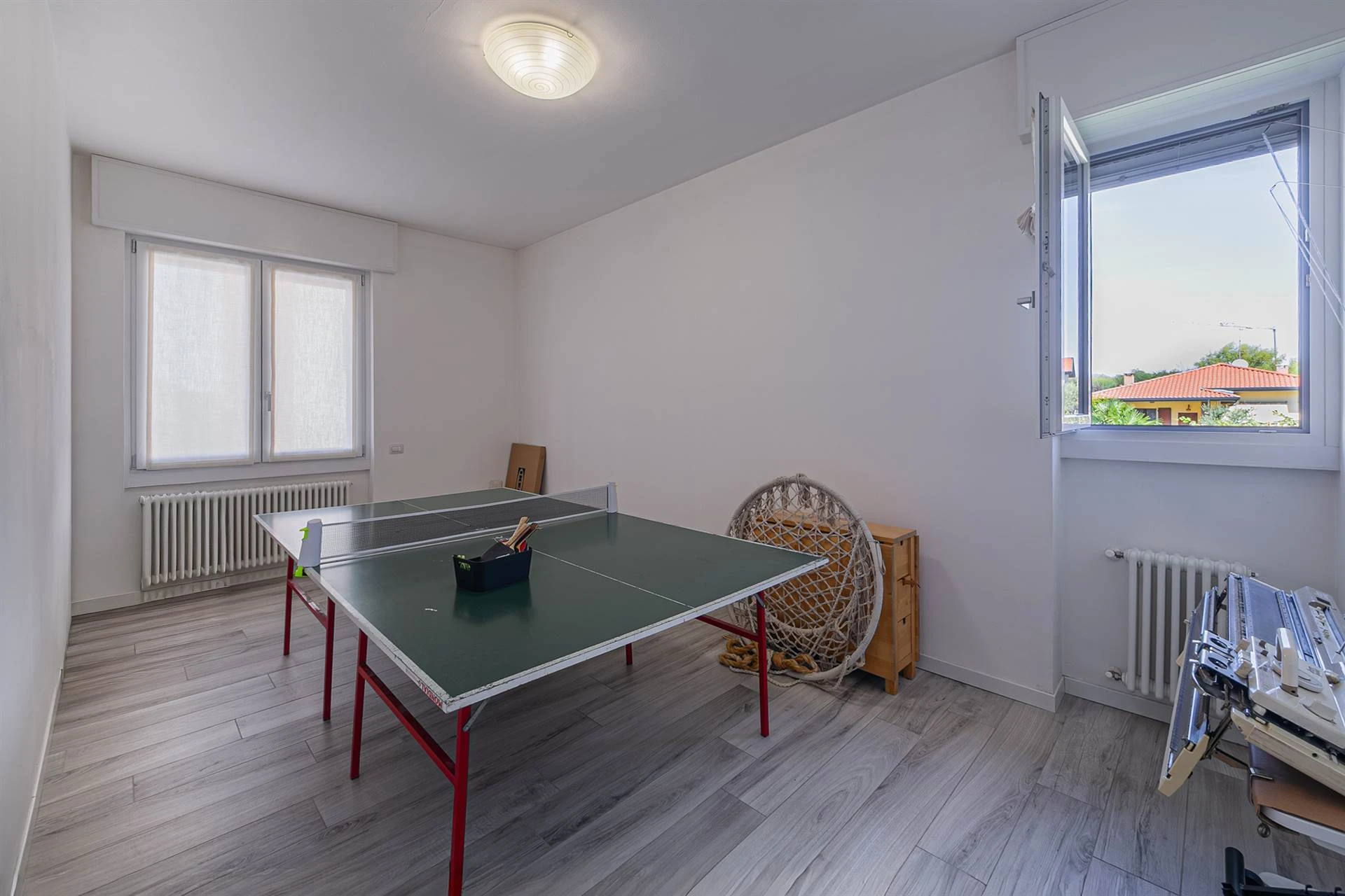 La villa sorge su un lotto di 1.000 m² e dispone di un comodo accesso con cortile pavimentato che conduce al grande portico coperto. Al piano terra, in un'area di circa 120 m², si trovano il box auto, la cantina, la lavanderia e il vano scala che accompagna al piano superiore. Qui si sviluppa un appartamento di circa 170 m², già predisposto per essere suddiviso in due unità indipendenti. L'ingresso si apre su un disimpegno che conduce al grande soggiorno con angolo cottura a vista e affaccio sul balcone, e prosegue verso un ulteriore disimpegno che serve un bagno, una camera matrimoniale con balcone, un secondo bagno e una cameretta. Collegato all'abitazione principale si trova un secondo appartamento, già provvisto di accesso indipendente, composto da soggiorno con angolo cottura e balcone, disimpegno, bagno e camera matrimoniale.