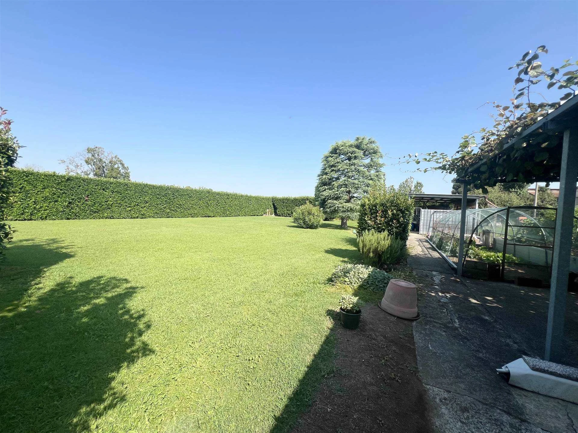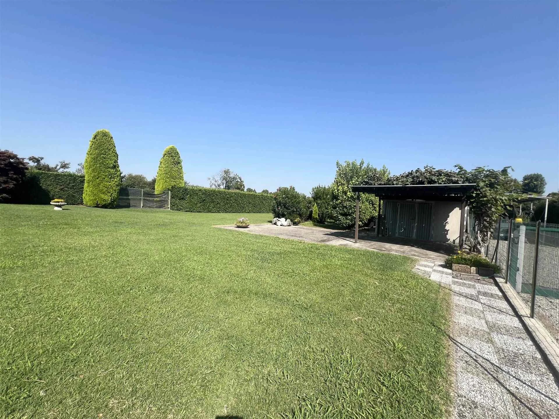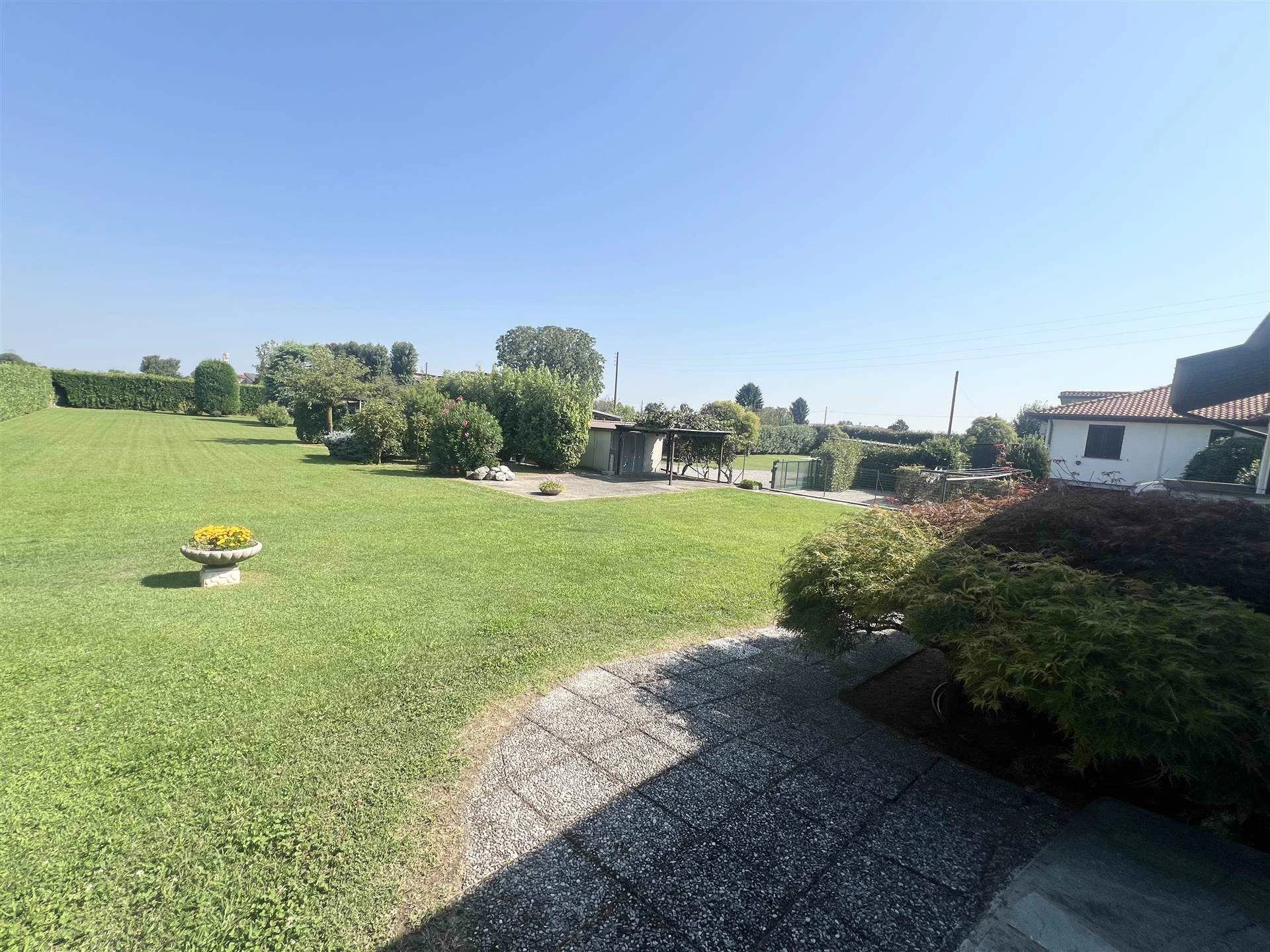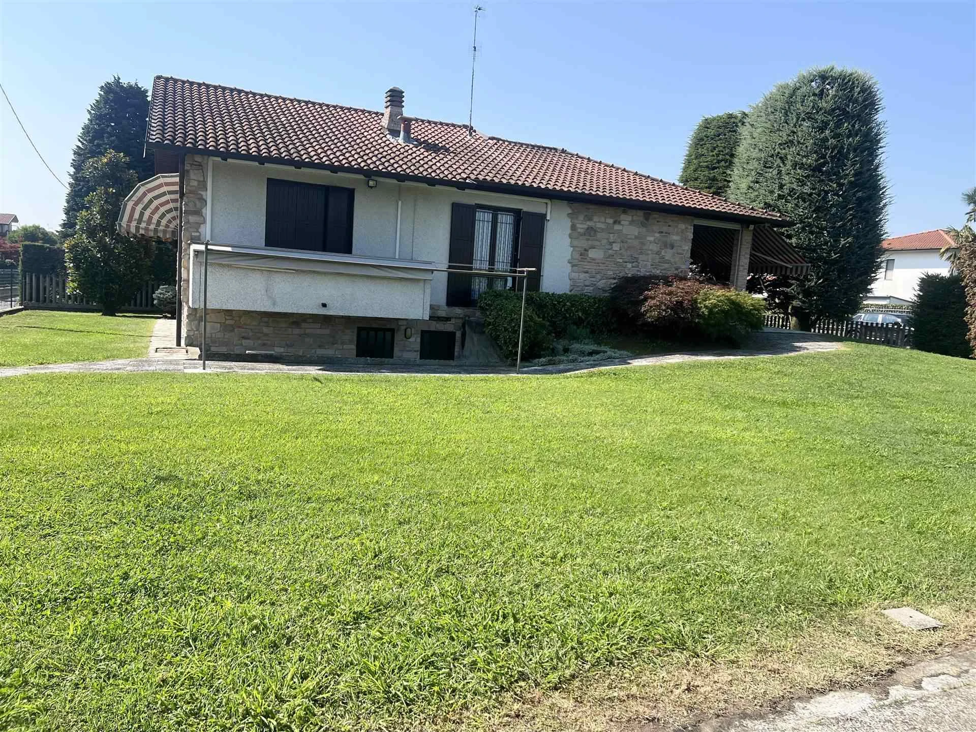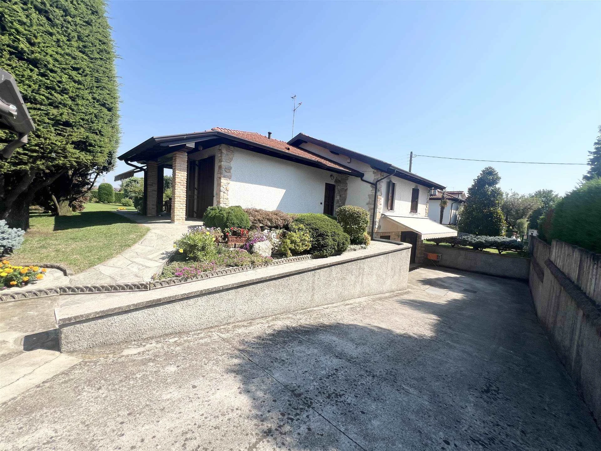Ubicata in una zona residenziale di sole VILLE ed a poca distanza da Treviglio; AMPIA villa singola confortevole disposa su un UNICO piano!! Al piano TERRA siamo accolti dal PORTICO conviviale con tendaggio motorizzato. l'AMPIO soggiorno comunica con la cucina ABITABILE ed il disimpegno che accede alla zona notte dove si trovano la camera MATRIMONIALE con sfogo sul balcone, ulteriori due comode CAMERE da letto, il primo bagno padronale attrezzato sia di vasca che di doccia!! la scala in muratura ci accompagna al piano interrato dove sono presenti due locali adibiti a cantina, a deposito, oltre a due utili ripostigli; non può mancare il secondo bagno/lavanderia! Collegato al piano interrato c'è l'autorimessa di ben 45 mq!! La soluzione immobiliare è attorniata dall'area esterna di 430mq e dal TERRENO agricolo di ben 2.280mq!!