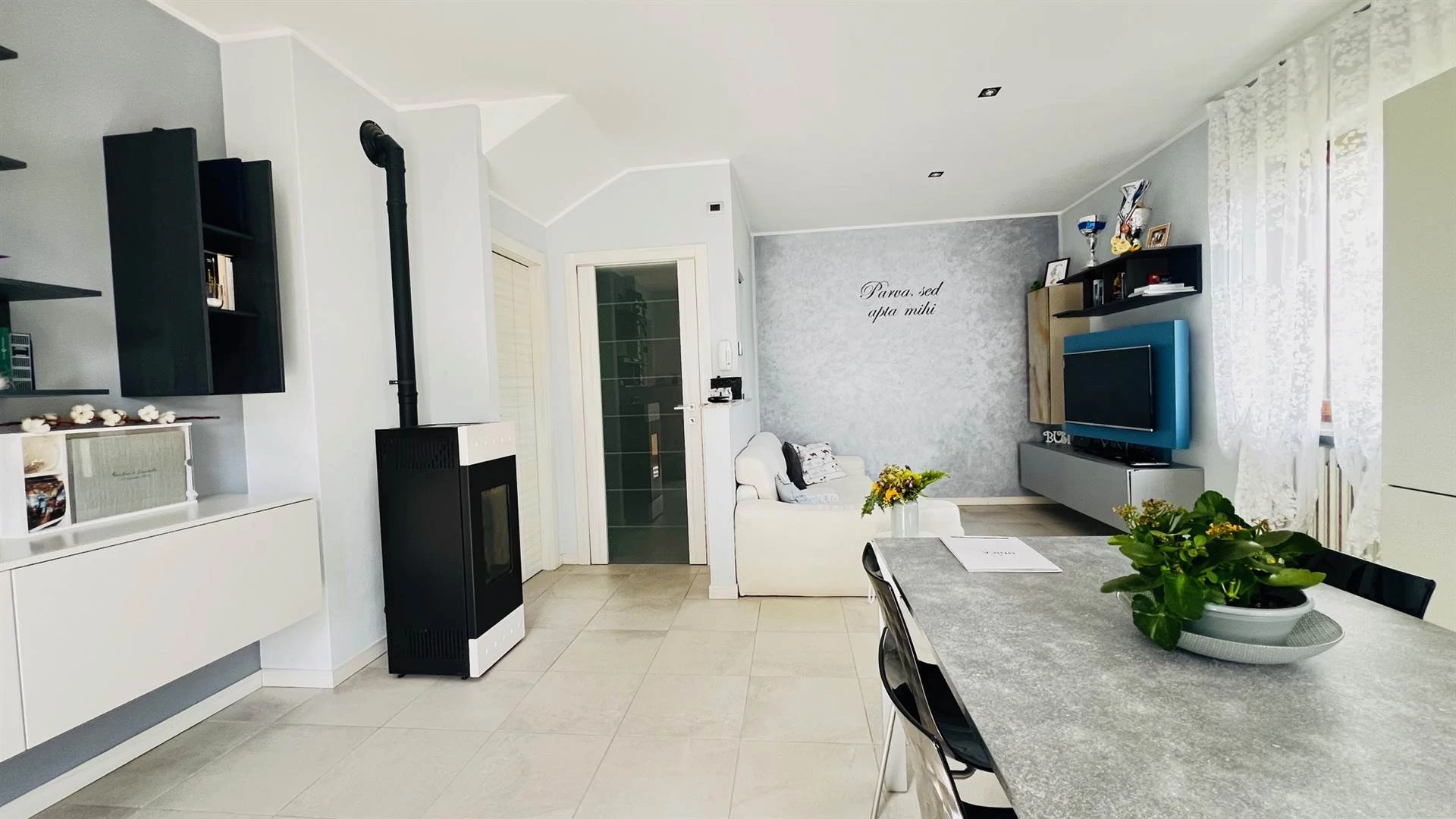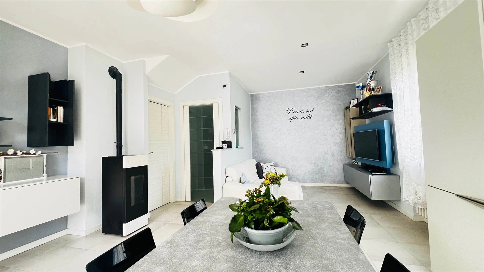 Appena entri, al piano terra, vieni accolto da un ambiente caldo e funzionale: il soggiorno con cucina è il cuore della casa, uno spazio da vivere ogni giorno. Sempre su questo livello trovi anche un comodo bagno di servizio, pratico per la vita quotidiana e per gli ospiti.