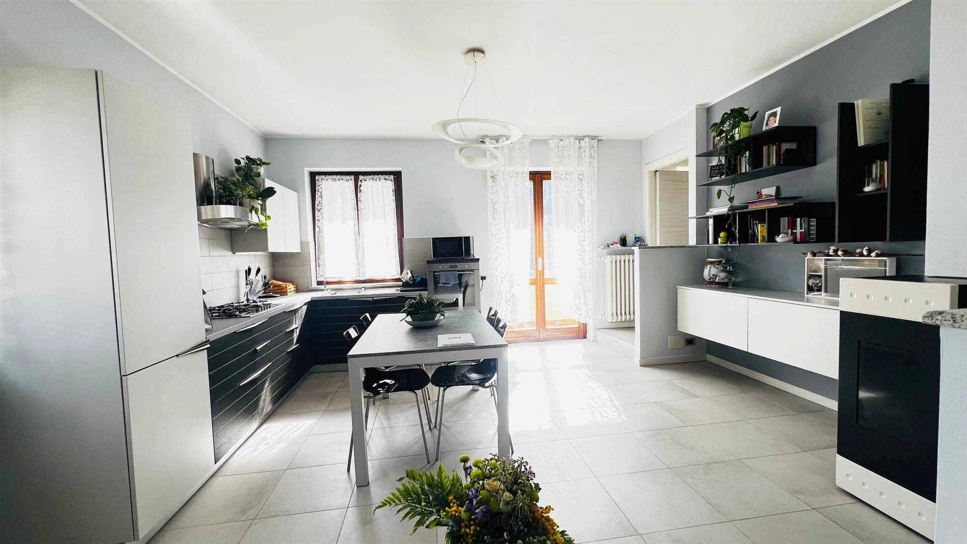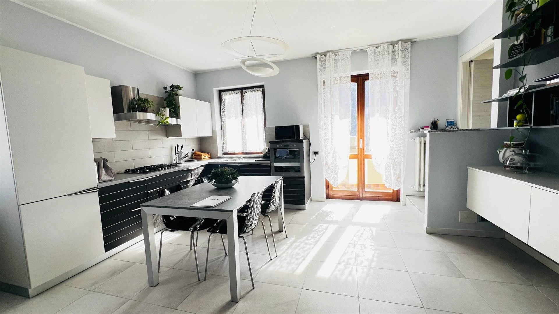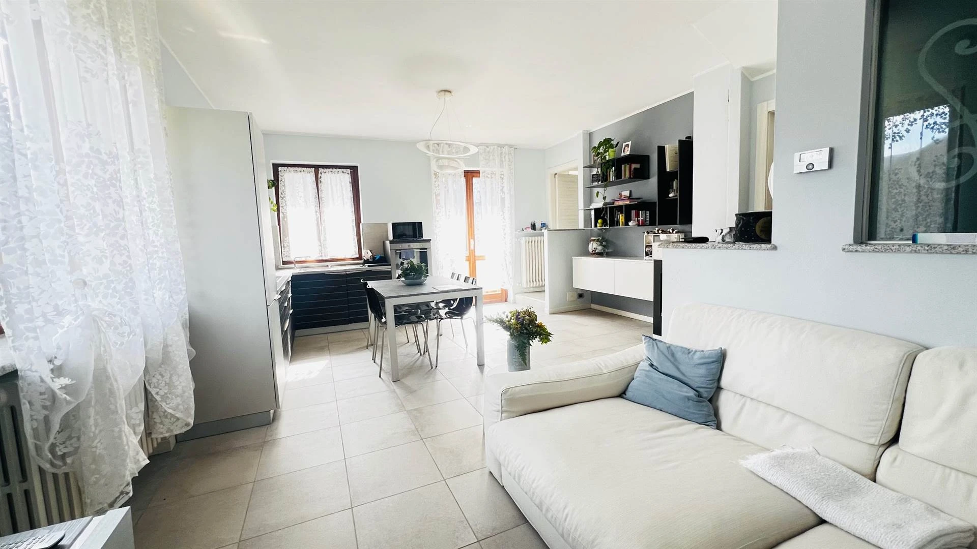 Dal soggiorno si accede al portico coperto, un vero valore aggiunto: immagina colazioni lente o cene estive con una vista aperta e rilassante. Il giardino privato di circa 200 mq, direttamente collegato, è perfetto per chi ha bambini, animali o semplicemente desidera uno spazio all'aperto tutto per sé.