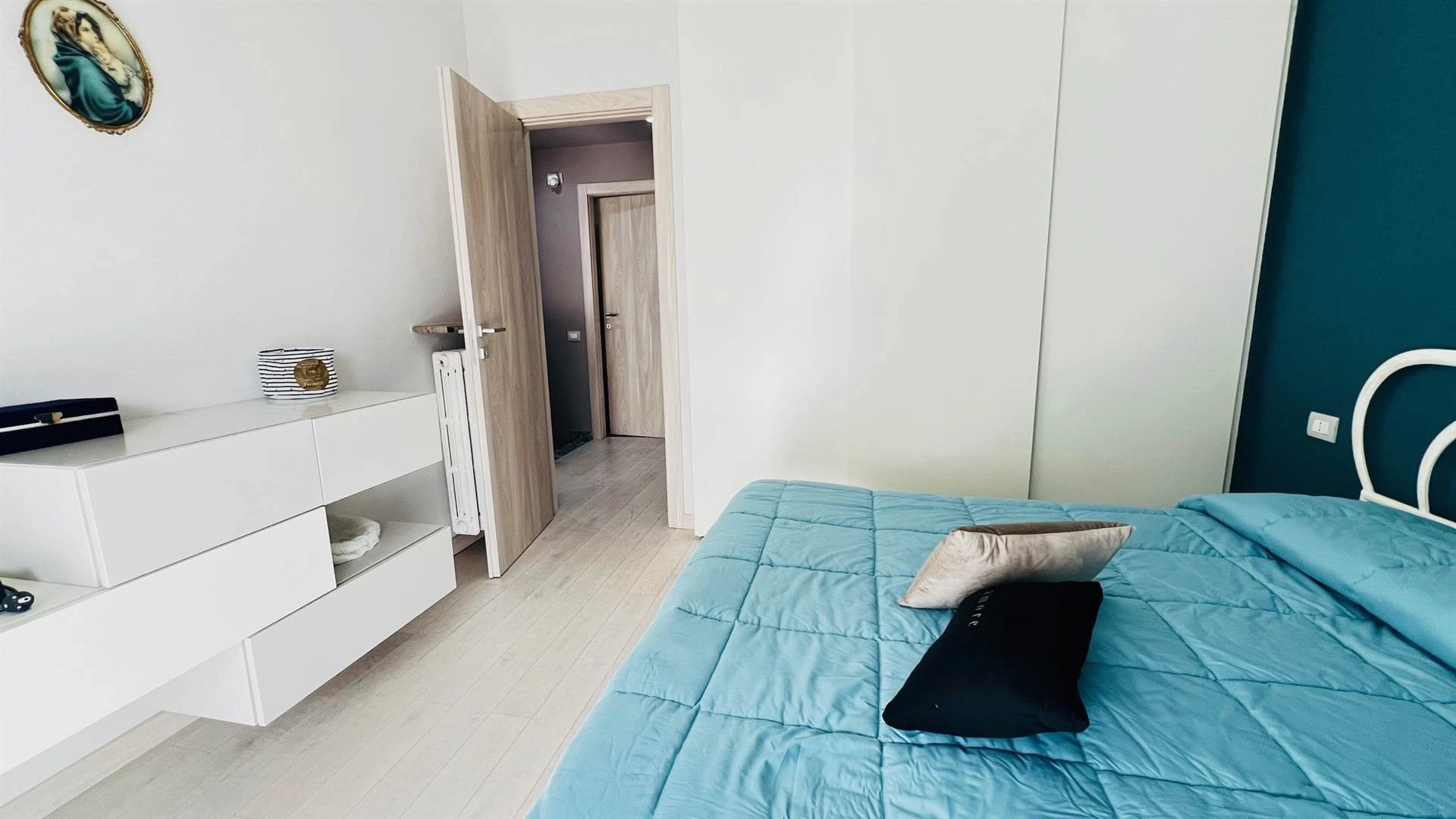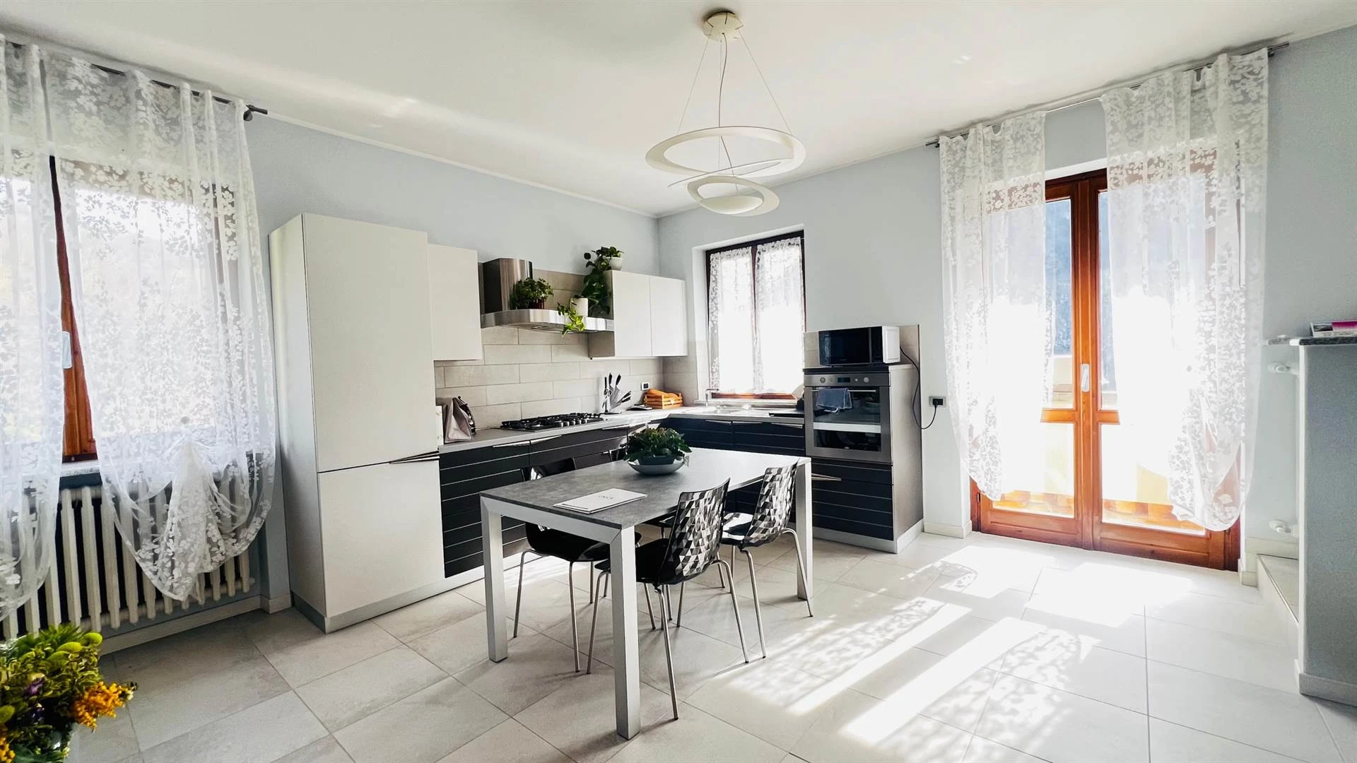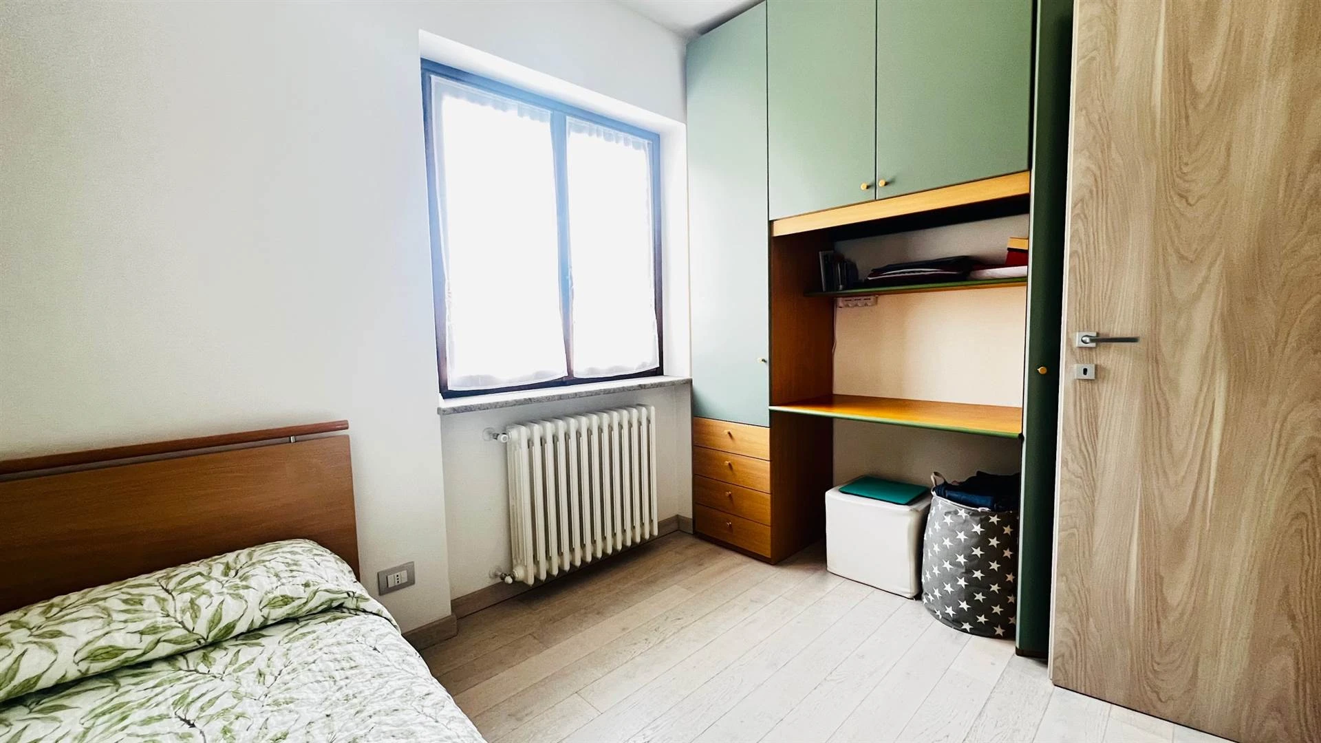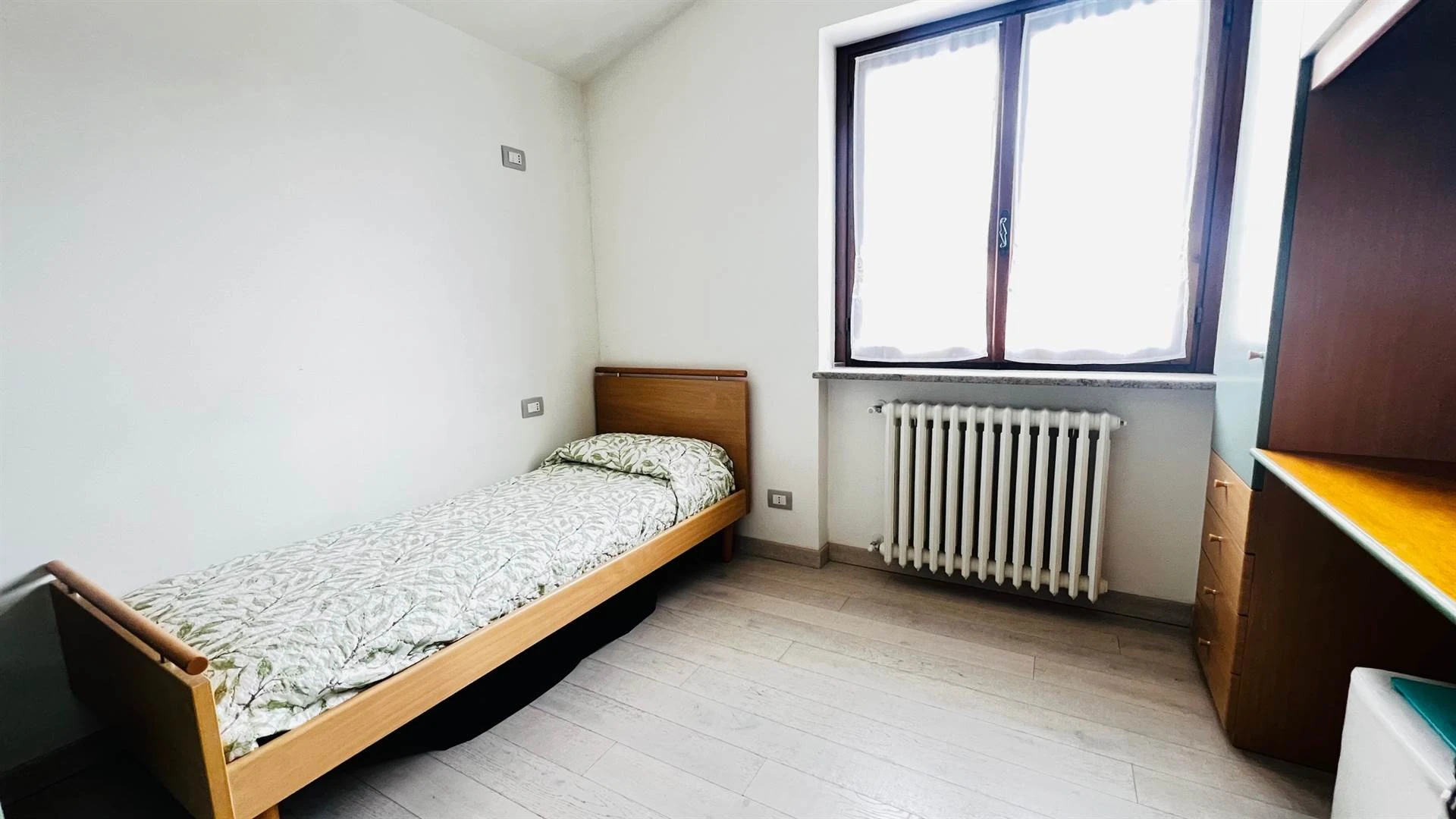 Dal soggiorno si accede al portico coperto, un vero valore aggiunto: immagina colazioni lente o cene estive con una vista aperta e rilassante. Il giardino privato di circa 200 mq, direttamente collegato, è perfetto per chi ha bambini, animali o semplicemente desidera uno spazio all'aperto tutto per sé.